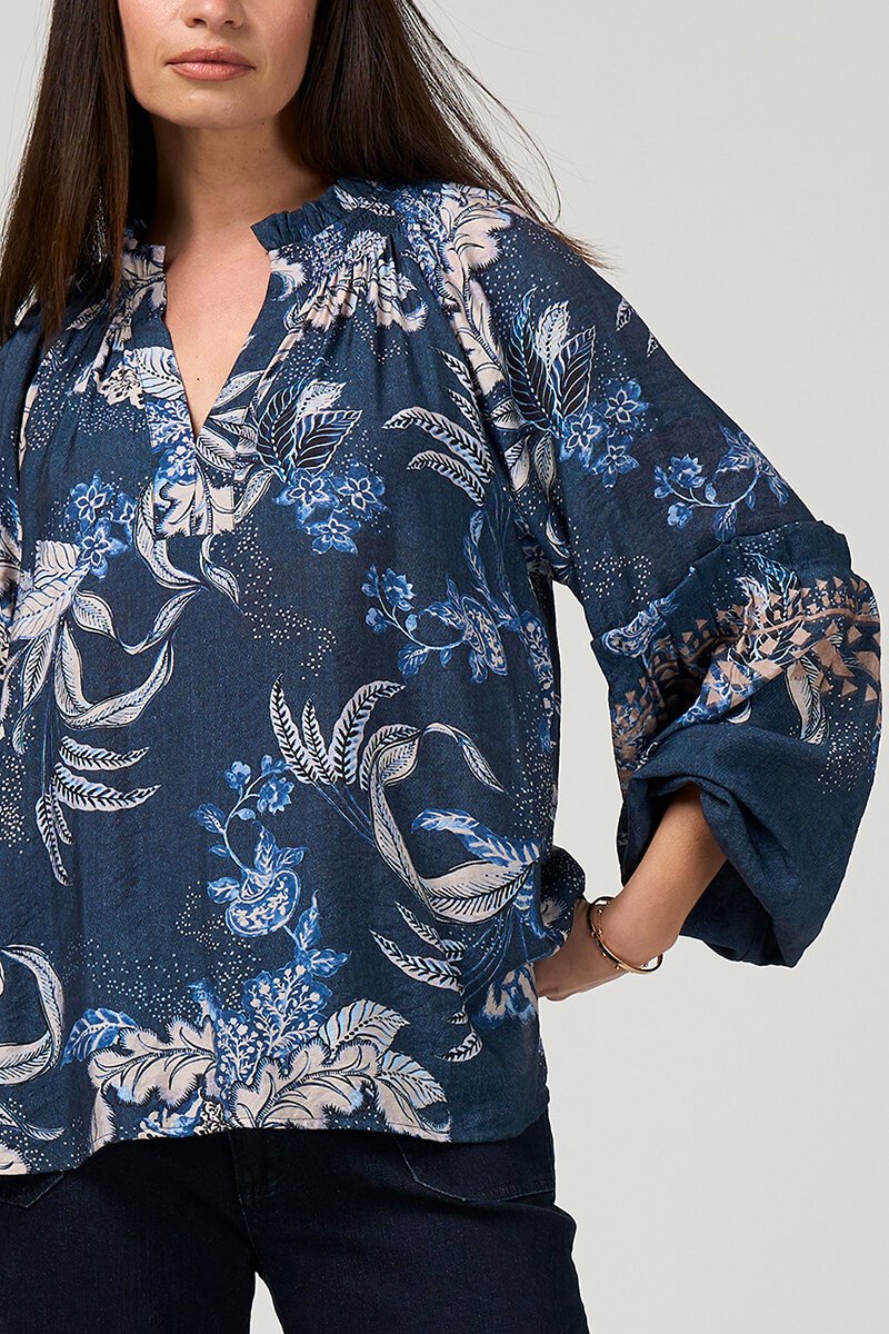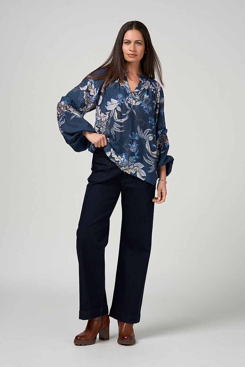 The Loobies Story Casella Blouse strikes that perfect balance between relaxed and refined. The denim-toned print adds depth, while the easy shape makes it a go-to for everyday styling.