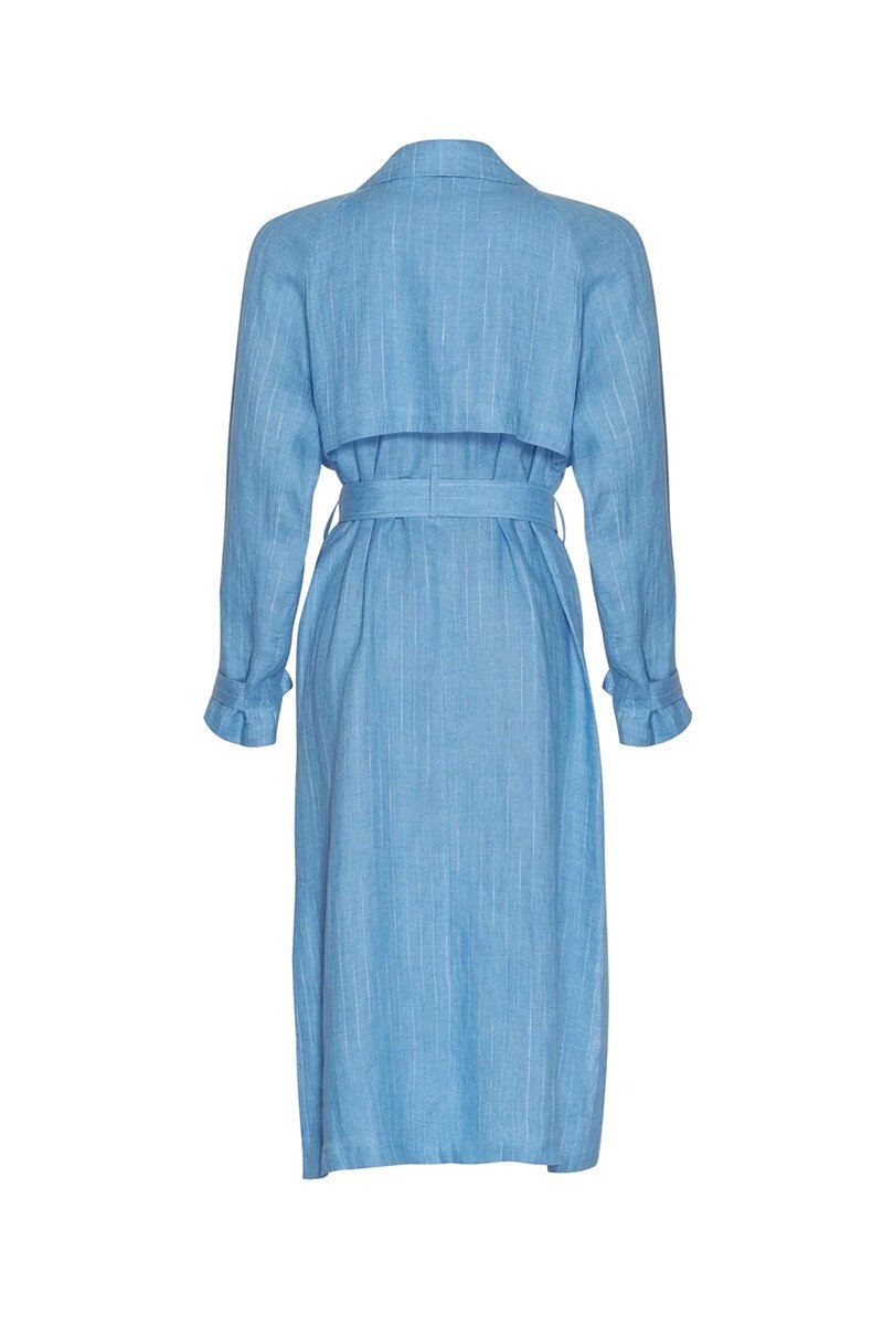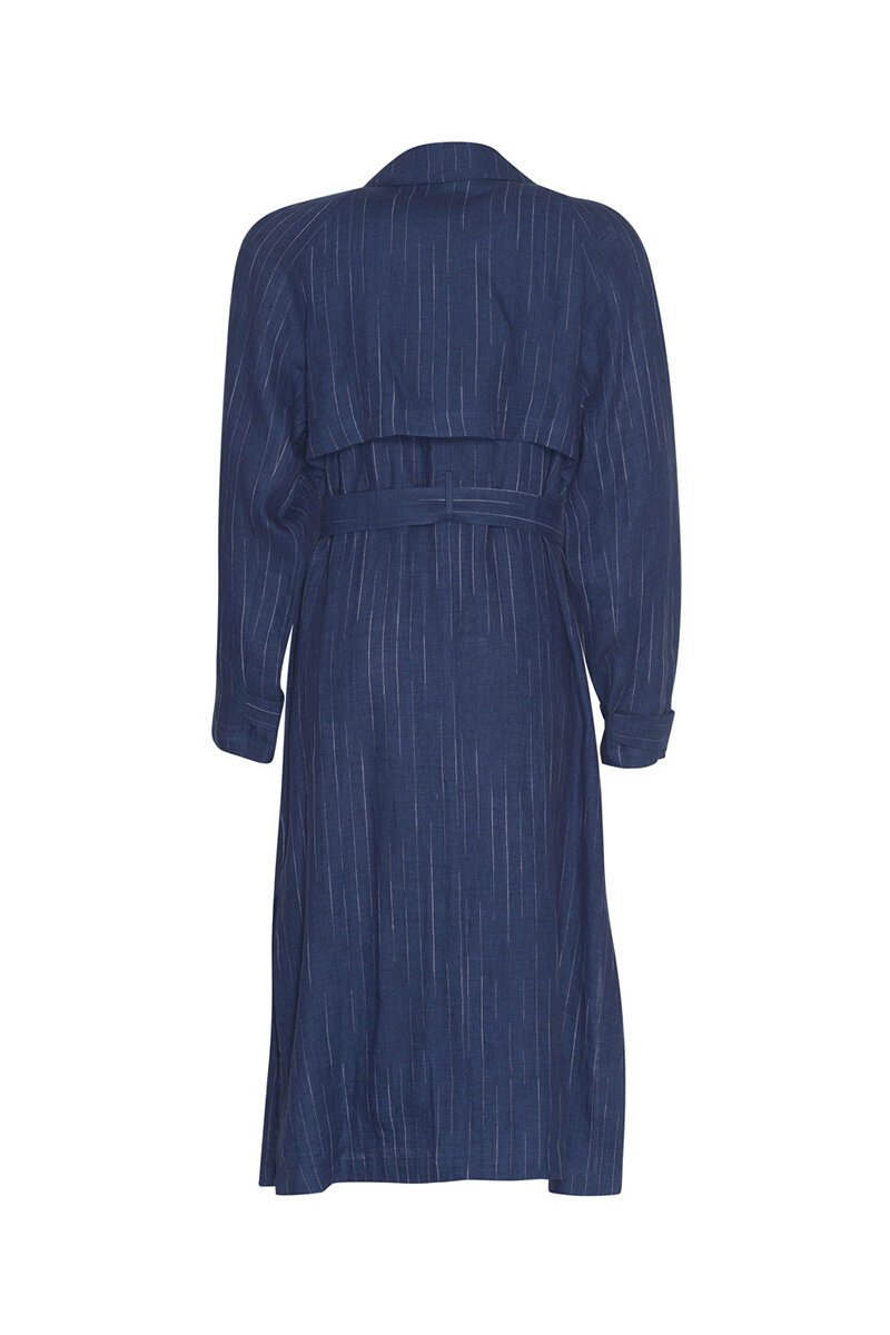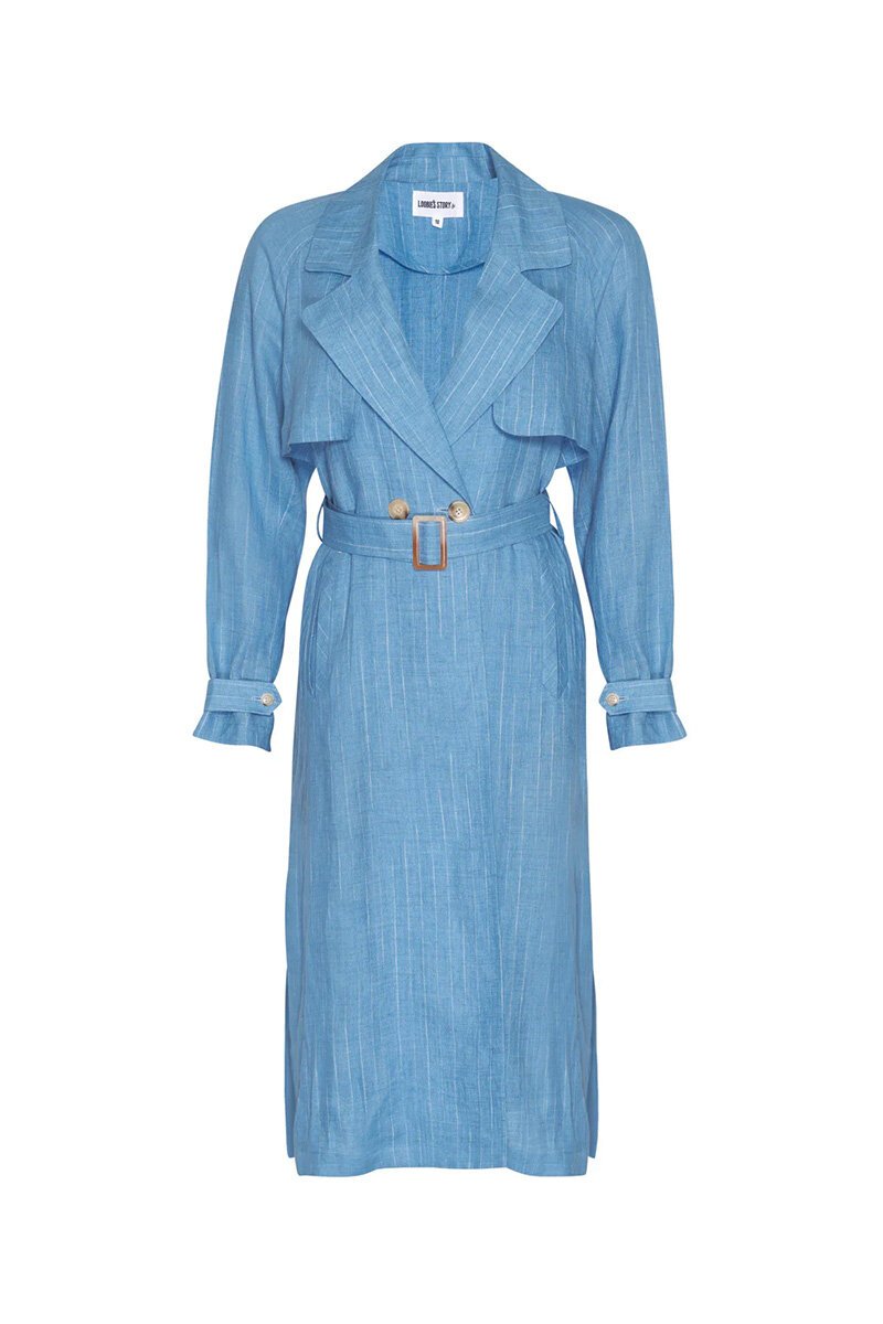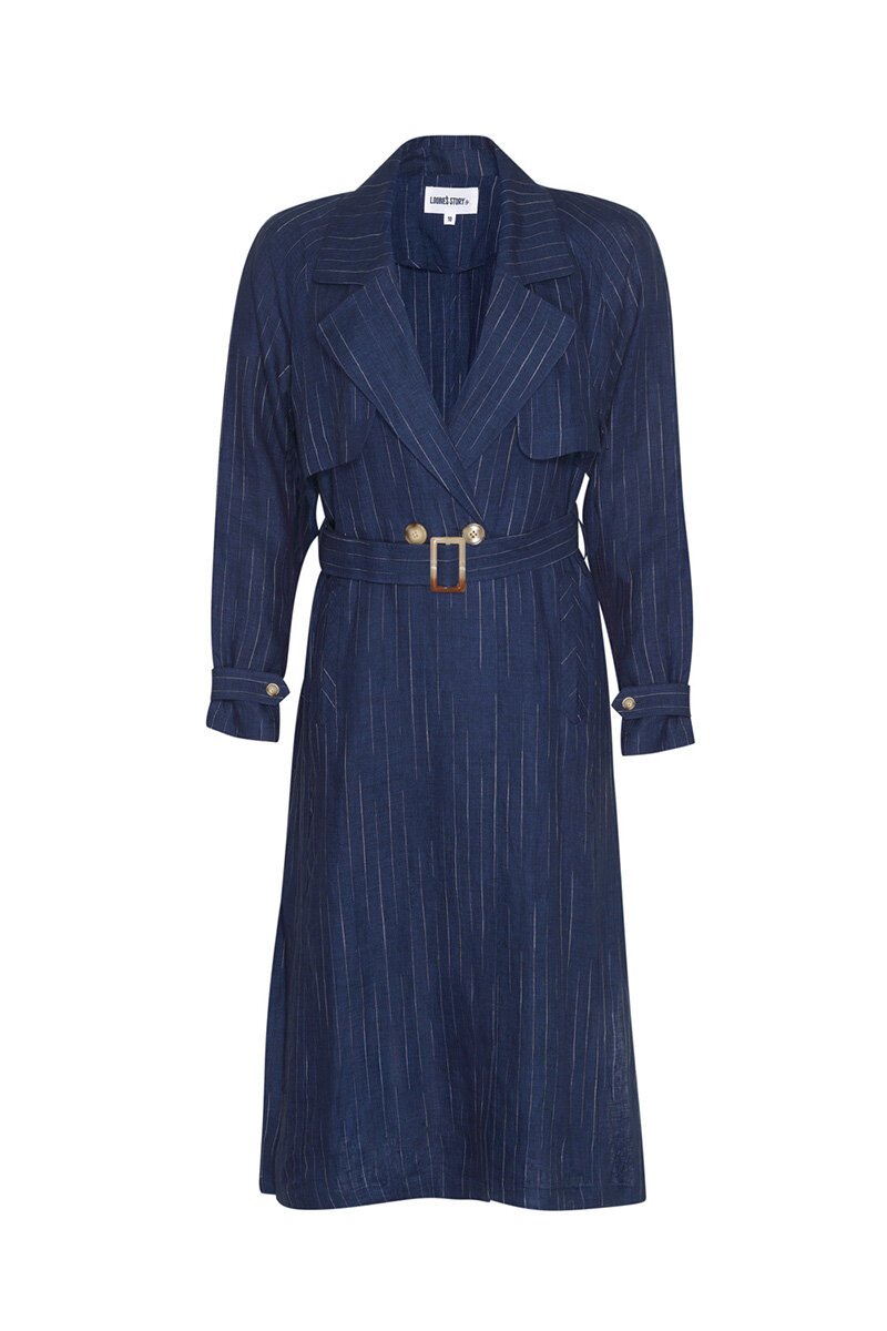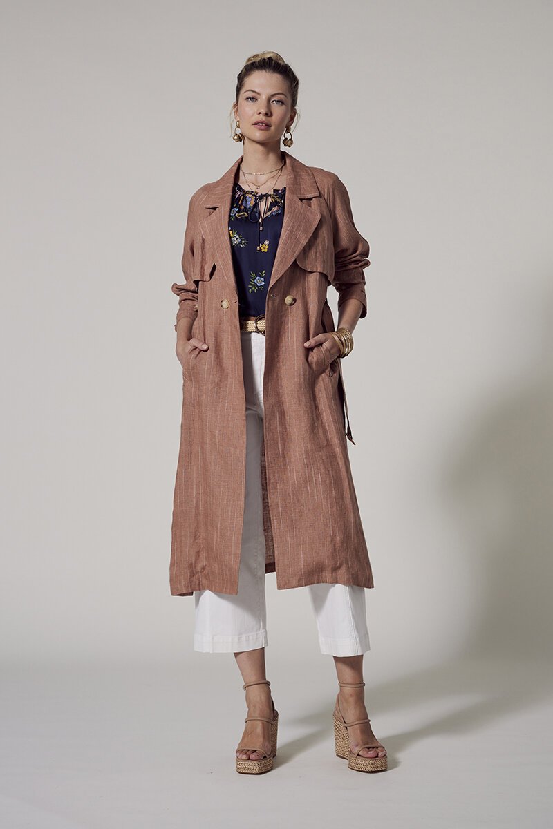 The Loobies Story Chianti Trench Coat is your summer style essential! With its chic disrupted pinstripe, faux double-breasted design, deep side splits, wide angled welt pockets, and a removable belt, it’s the perfect blend of classic and contemporary for a fresh, sophisticated look.