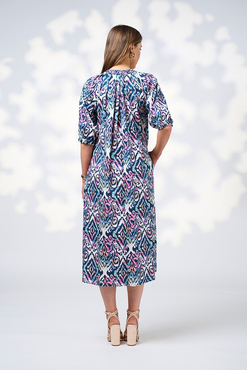 The Loobie's Story Gypset Midi Dress is made for effortless versatility. Featuring a striking placement print and button-through front, it’s designed to be worn as a dress or layered open over jeans. Perfect for relaxed days or elevated evenings.