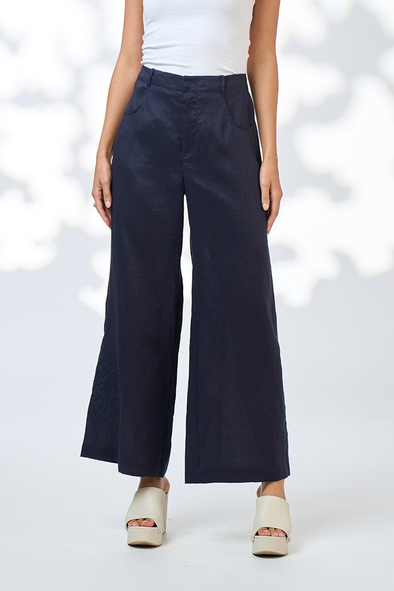 The Lia Pant is where luxe meets laidback. Cut in linen with a flattering wide leg, these pants bring an easy elegance to every outfit. The subtle embroidery down the leg adds just the right touch of detail, while the elasticated back waist keeps them as comfortable as they are chic.