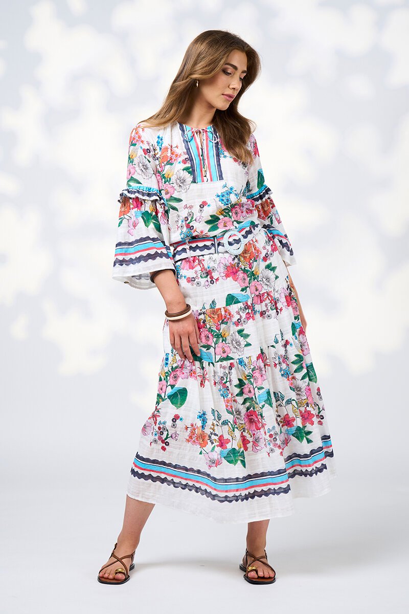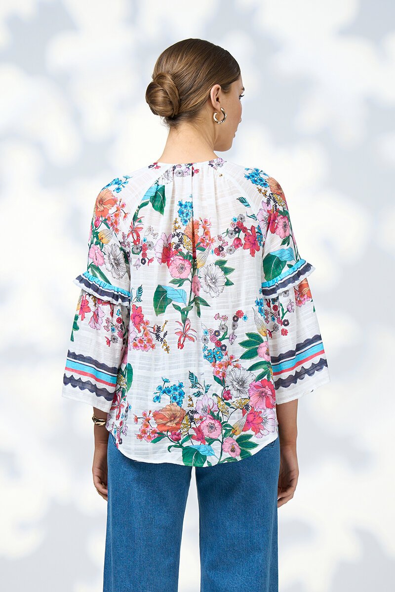 The Pandora Blouse is made for sun-drenched days and spontaneous plans. Its playful floral print, flounced sleeves, and contrast striped details bring the fun—while the easy silhouette keeps things relaxed. Tie the neck, or leave it open and floaty.