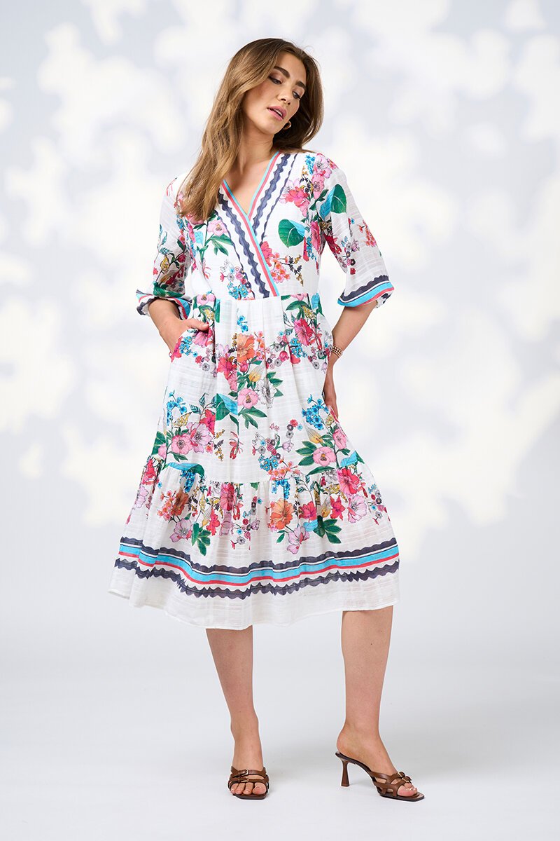 A warm-weather wardrobe dream, the Loobies Story Pandora Dress is all about floaty ease and bold, feel-good colour. Featuring a crossover V neckline, tiered midi skirt and elbow-length sleeves, this beauty brings shape without clinging. Add sandals, wedges or a low heel—she’s an instant outfit.