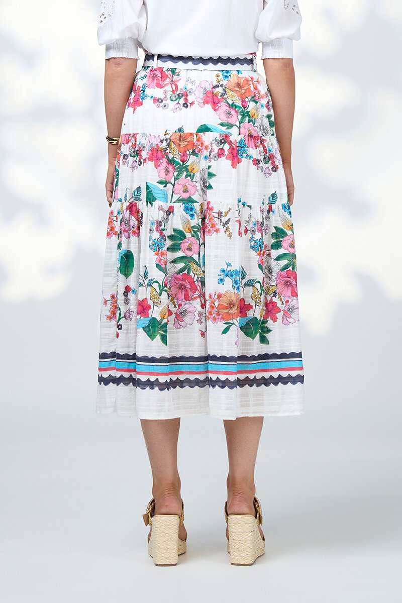 The Loobies Story Pandora Skirt brings all the colour, movement and feel-good energy. With a soft, tiered shape and matching belt to pull it all in, it’s the perfect mix of relaxed and polished. Wear it with the Pandora Blouse or let it shine on its own.