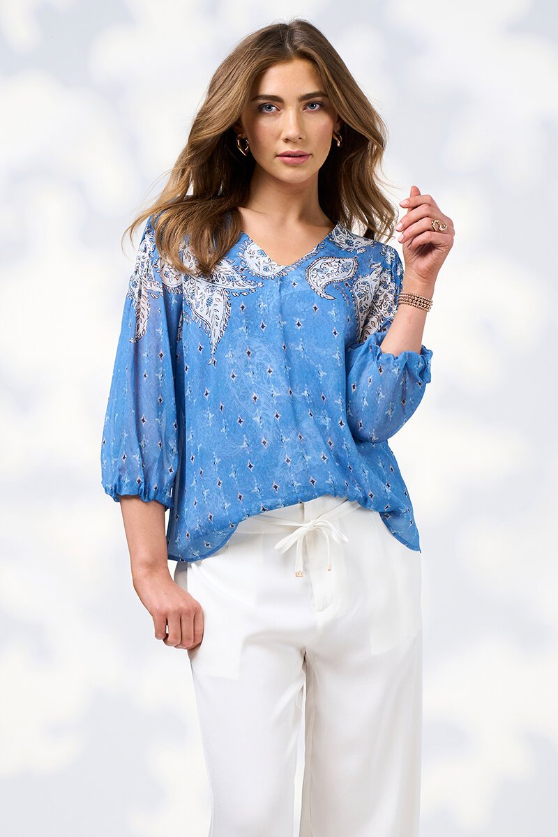 Easy, elegant, and full of soft movement, the Sibella Blouse is your go-to for effortless polish. The floaty fabric and subtle paisley print give it a timeless feel, while the relaxed silhouette makes it a dream to wear from work to weekend. Just add your favourite trousers and you’re sorted.