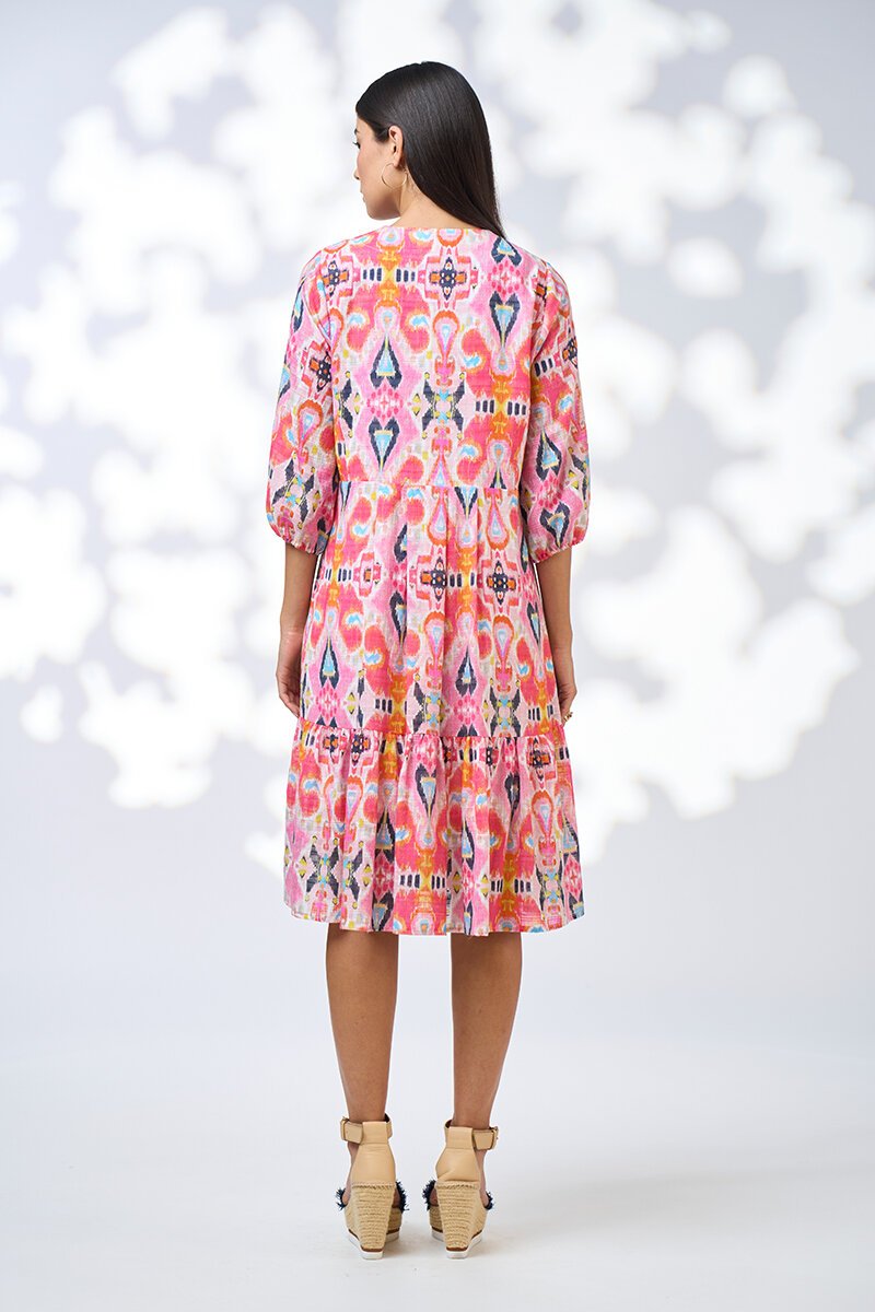 The Solana Dress is the kind of piece that makes getting dressed feel exciting again. Crafted in printed cotton with a faux wrap neckline and flattering princess seams, it’s fitted where it counts and relaxed where you want it. With its tiered skirt and hidden pockets, it’s a feel-good dress you’ll want to live in all season.