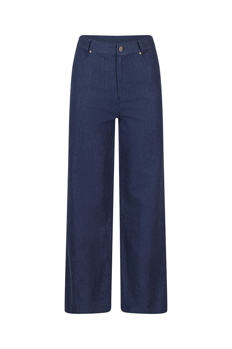 The Sutton Pant offers effortless style with its wide-leg silhouette and classic mid-wash denim. Designed for both comfort and flair, these pants are perfect for casual outings or dressing up with your favorite blouse. A wardrobe staple for the modern woman seeking timeless sophistication and easy wear.