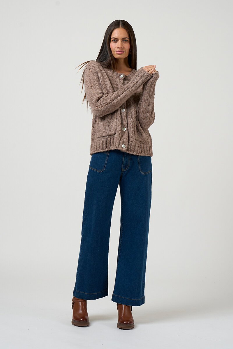 The Loobies Story Tilly Cardi is a beautifully soft knit with delicate pointelle detailing that adds texture and charm. The relaxed silhouette and button front make it an easy layering piece for cosy, polished winter style.