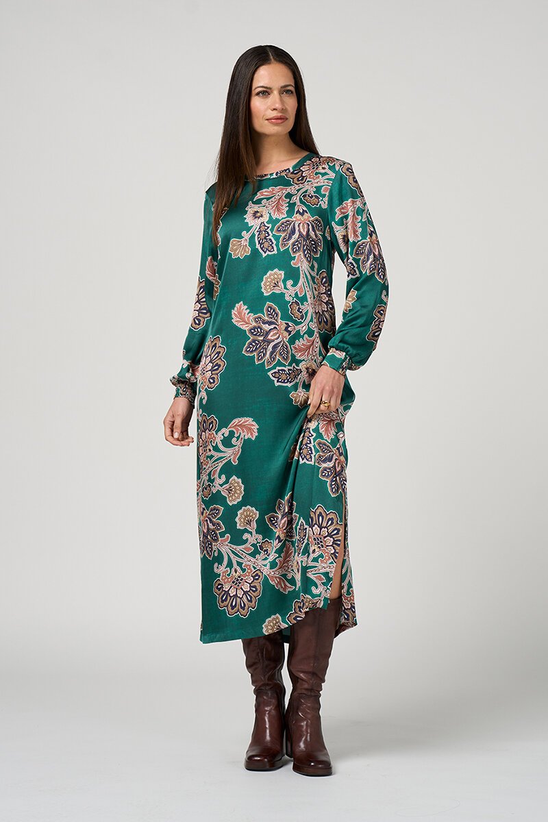 The Loobies Story Versailles Dress is an elegant midi style with a rich floral print that feels both timeless and striking. The relaxed silhouette and soft sleeve detail create beautiful movement, making it perfect for effortless day-to-evening dressing.