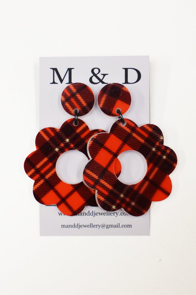 M & D Patterned Flower Stud Earring