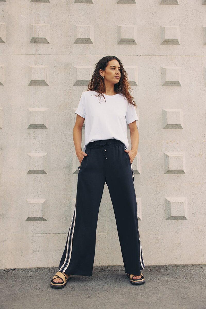 Sporty, crisp and effortlessly cool—the Linear Tee is your go-to off-duty top with a polished twist. Contrast stripe detailing adds a subtle athletic edge. Wear it with the matching Linear Pant for a relaxed set that still feels put-together.