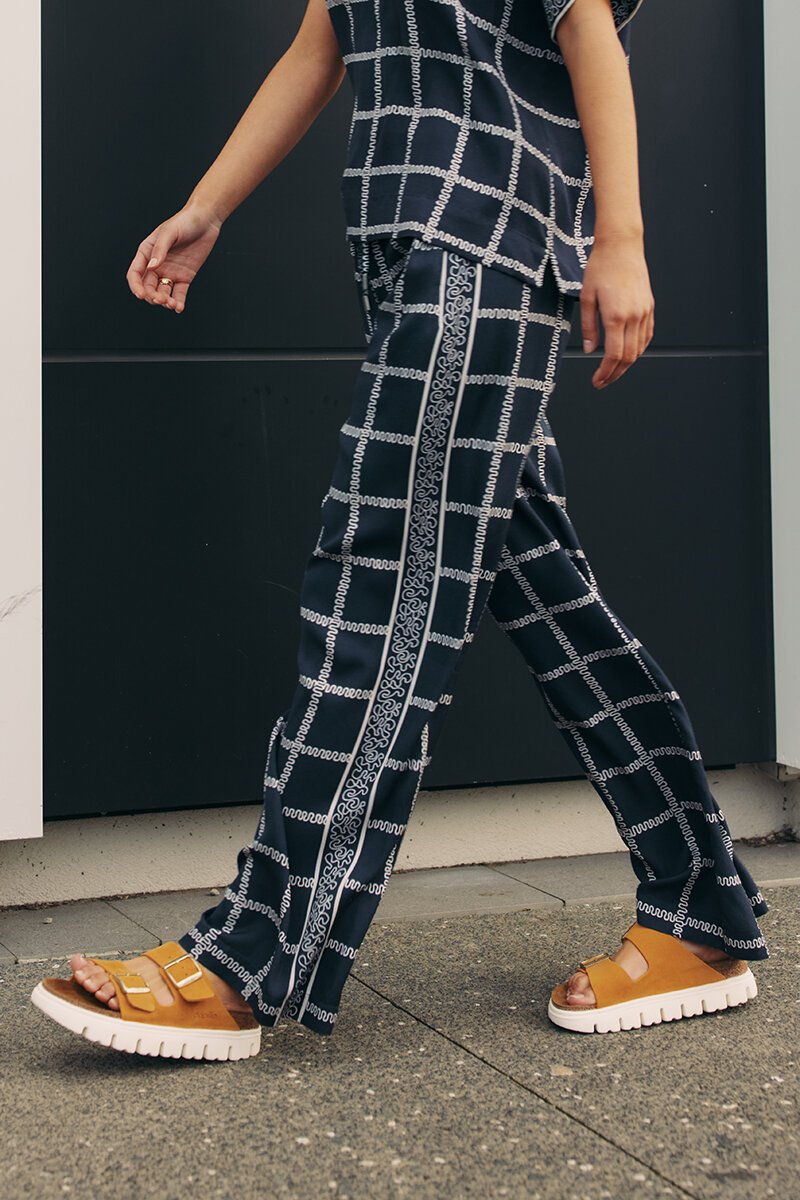 A wide leg and subtle side stripe give the Lyrical Pant an edge that’s both smart and fun. Designed for movement (and compliments), they drape beautifully and offer an easy fit with a little extra detail down the leg.