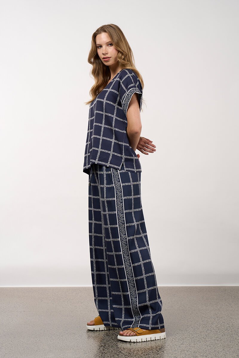 The definition of an easy outfit maker. The Lyrical Top features a soft drapey fit with a V neckline, short sleeves, and a stepped hem with side splits. Finished with custom print detail and contrast embroidered sleeve cuffs—it’s the kind of top that looks good with anything.