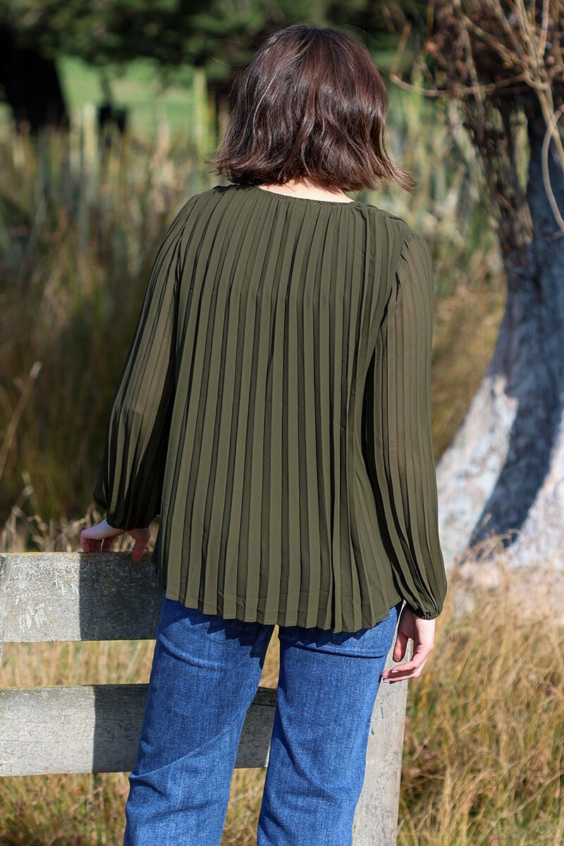 The Madly Sweetly Morse Blouse brings timeless elegance with its delicate pleating and airy silhouette. The soft tie neckline and sheer sleeves add a refined touch, perfect for dressing up or down. Tuck it into tailored pants or wear it loose for effortless sophistication.