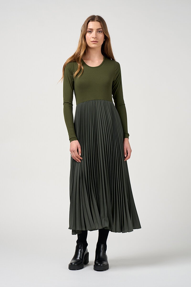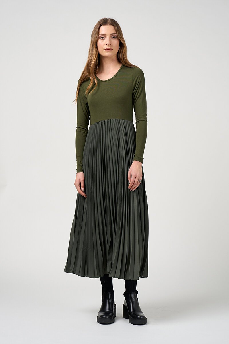 The Madly Sweetly Nova Dress is effortless with a touch of drama. Fitted through the top with a flowing pleated skirt, it moves beautifully and feels instantly put together.