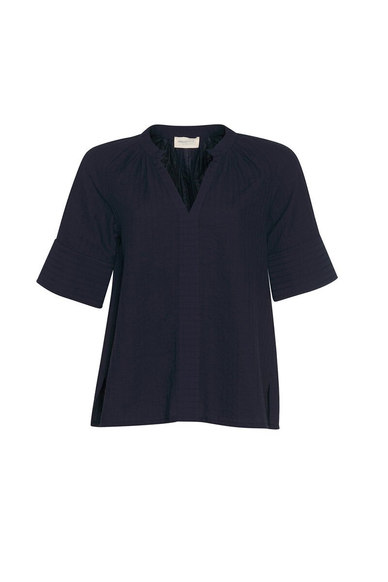 The Side Swipe Top is all about effortless cool with a touch of texture! Made from textured cotton, this top features a sleek mandarin collar and a V-neckline that flows into a stitched center front placket for a polished look. The sleeves? Totally versatile, thanks to the split cuffs that give you styling options. It's perfect for those days when you want something casual but still a little fancy!