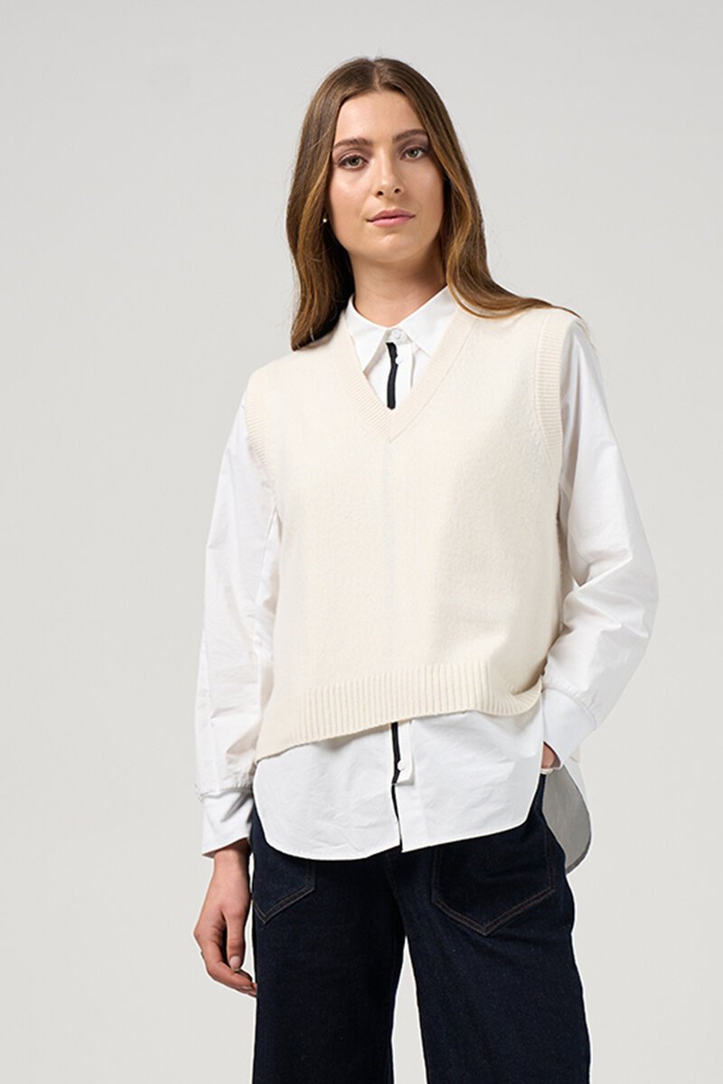The Madly Sweetly Uni Vest is the ultimate layering piece for cooler days. Clean, classic and easy to style, it adds warmth without bulk and works effortlessly over shirting or knits.