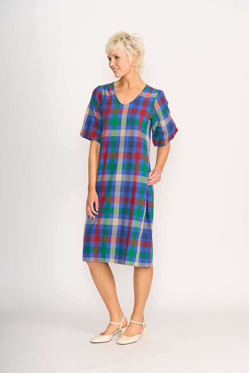 Easy, breezy and full of personality, the Memo Check Balloon Sleeve Dress is cut in 100% cotton with a relaxed fit, soft V-neckline and voluminous elbow-length sleeves. Just add sandals and you’re good to go.