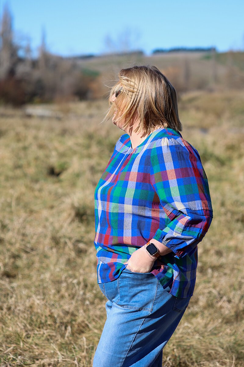 The Memo Check Pintuck Volume Sleeve Top is all about relaxed shape with elevated detail. Featuring pintuck accents on the sleeves, soft gathering at the neckline, and a gently curved hem—it’s easy, effortless, and a little bit playful.