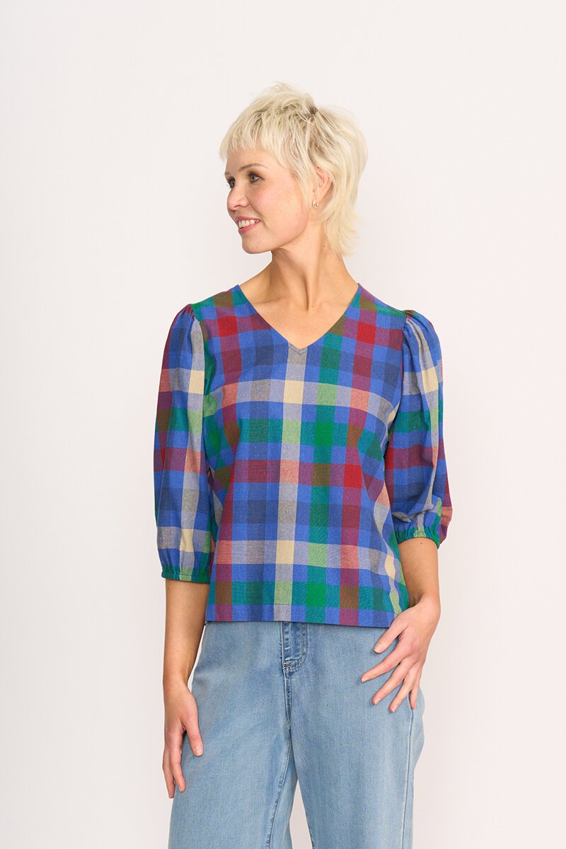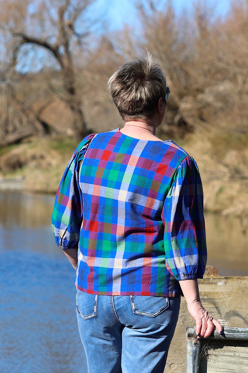 The Memo Check Volume Sleeve V Neck Top brings a playful pop to your everyday look. With soft volume sleeves, a relaxed fit, and that easy v neckline, it’s the kind of top that lifts your outfit and your mood