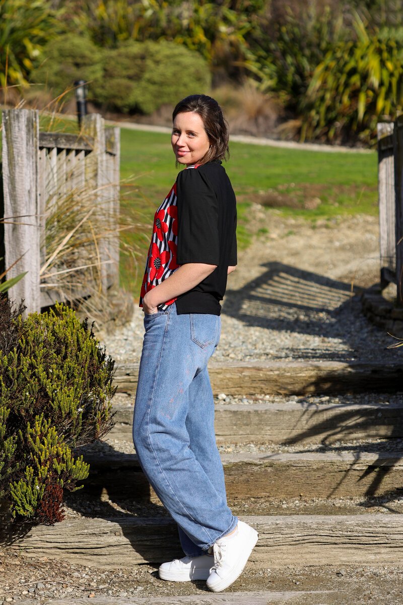 The Memo Combo Elbow Sleeve Top mixes smart design with standout print. A patterned woven front contrasts beautifully with the comfy jersey back and sleeves. Easy, fun, and totally wearable.