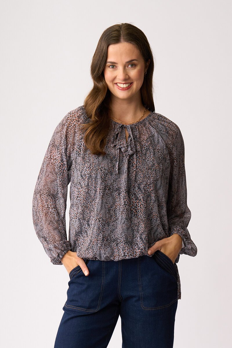 Floaty, feminine and easy to style. The Drawcord Hem Blouse features a soft gathered neckline with tie detail and billowy sleeves, finished with an adjustable drawcord hem to shape it your way.