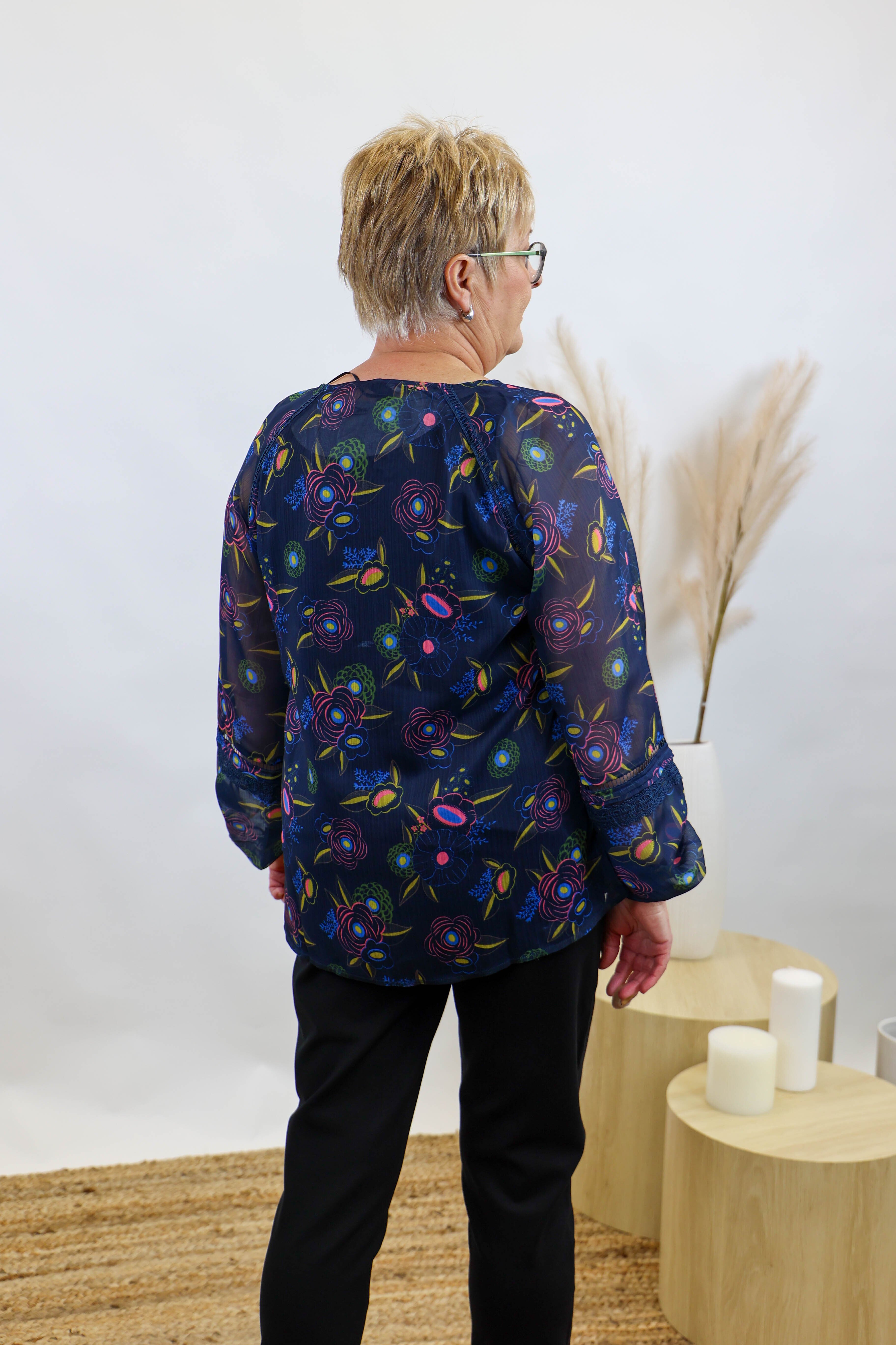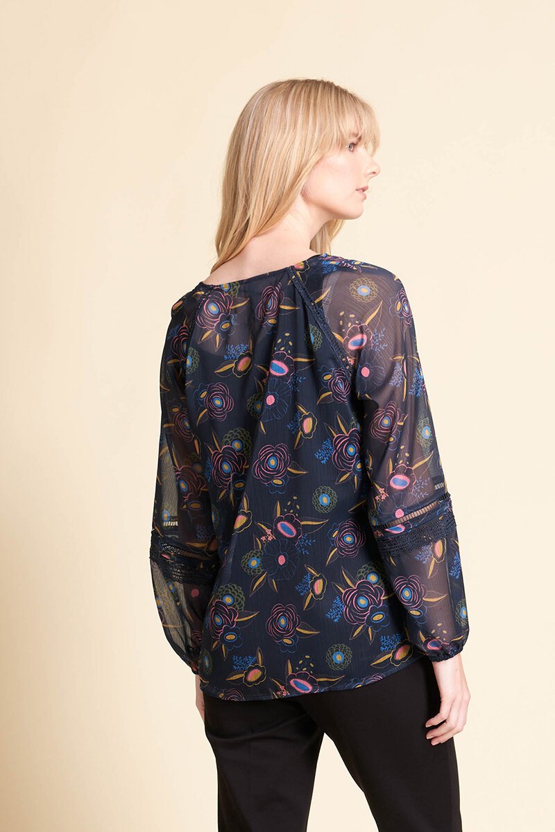 A sweet V neck blouse from Memo with a raglan sleeve and lace insert in the along arm, relaxed fit through the body with elasticated cuffs. Easy to dress up under a blazer or pop it on with denim.
