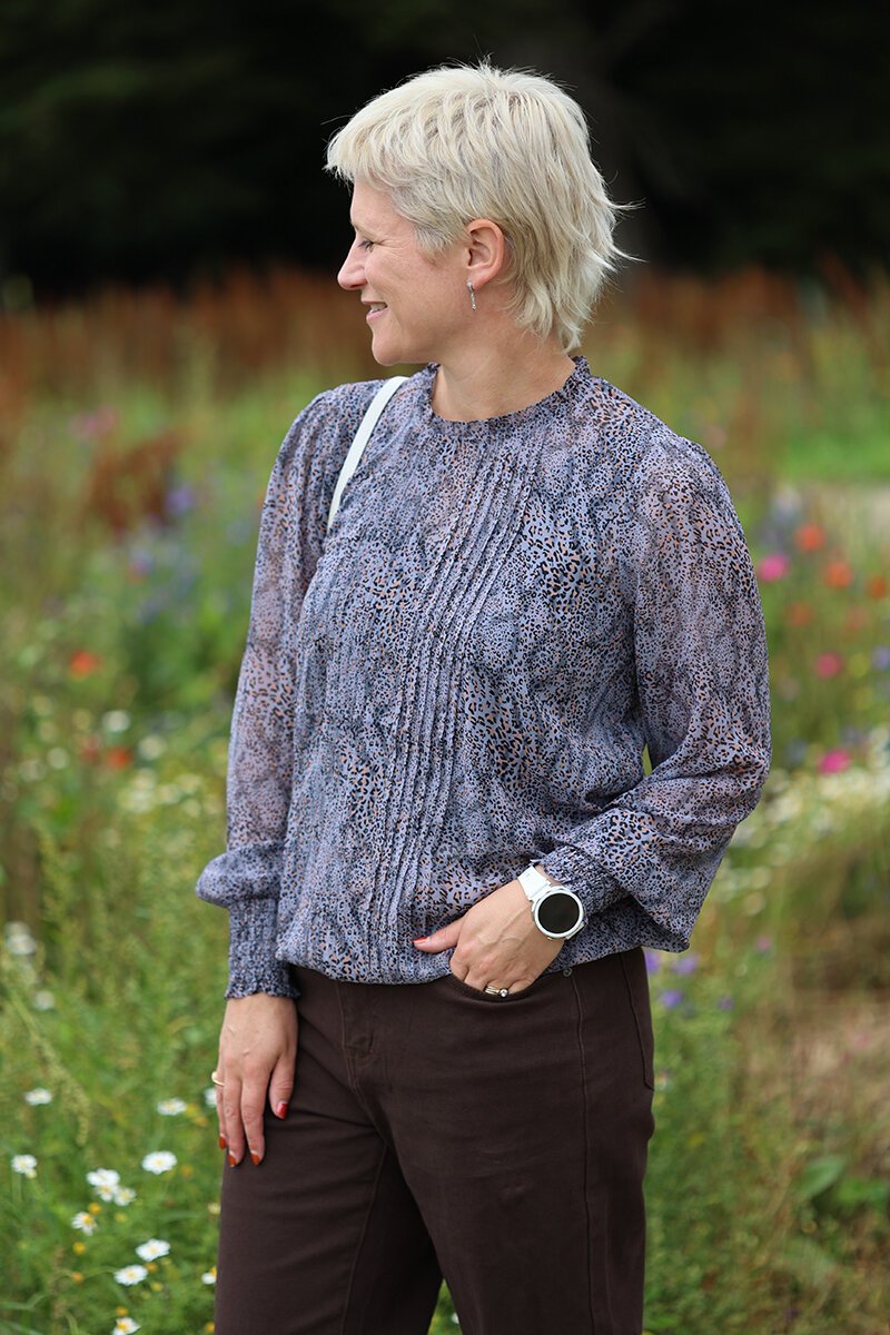 The Memo Pintuck Front Shirred Cuff Blouse, softly draped blouse designed to elevate everyday dressing, featuring delicate pintuck detailing through the front and gently shirred cuffs. A winning style repeated again