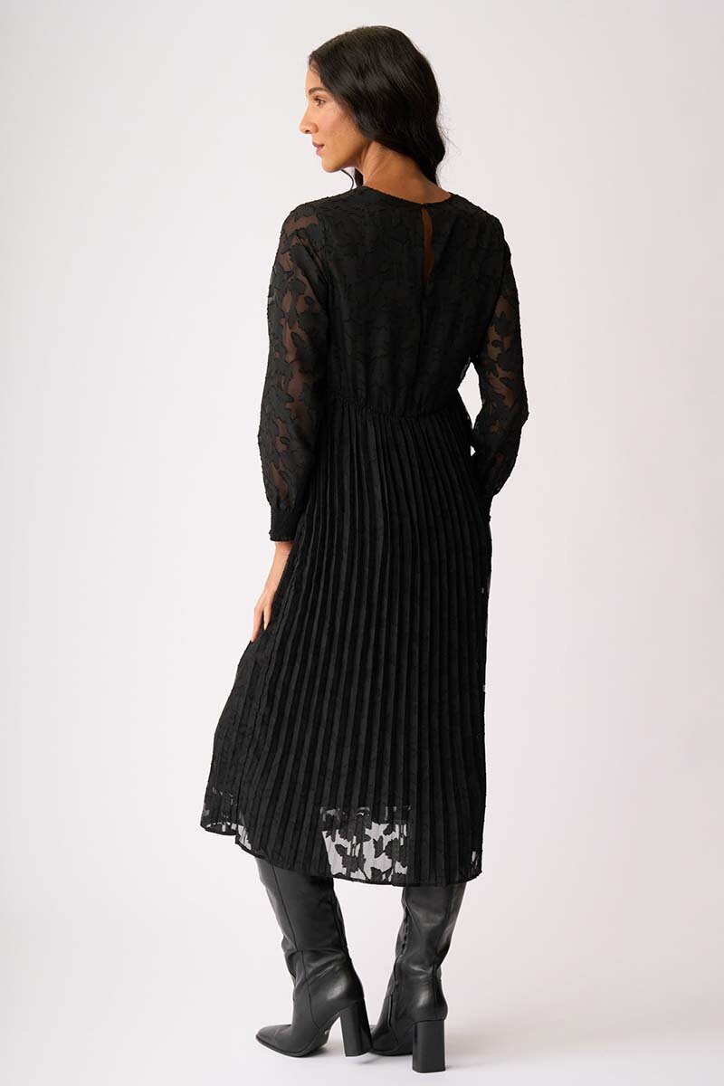 The Memo Pleat Dreams Dress is an elegant midi with soft texture and movement, designed to feel elevated yet easy for work, dinners, or winter events.