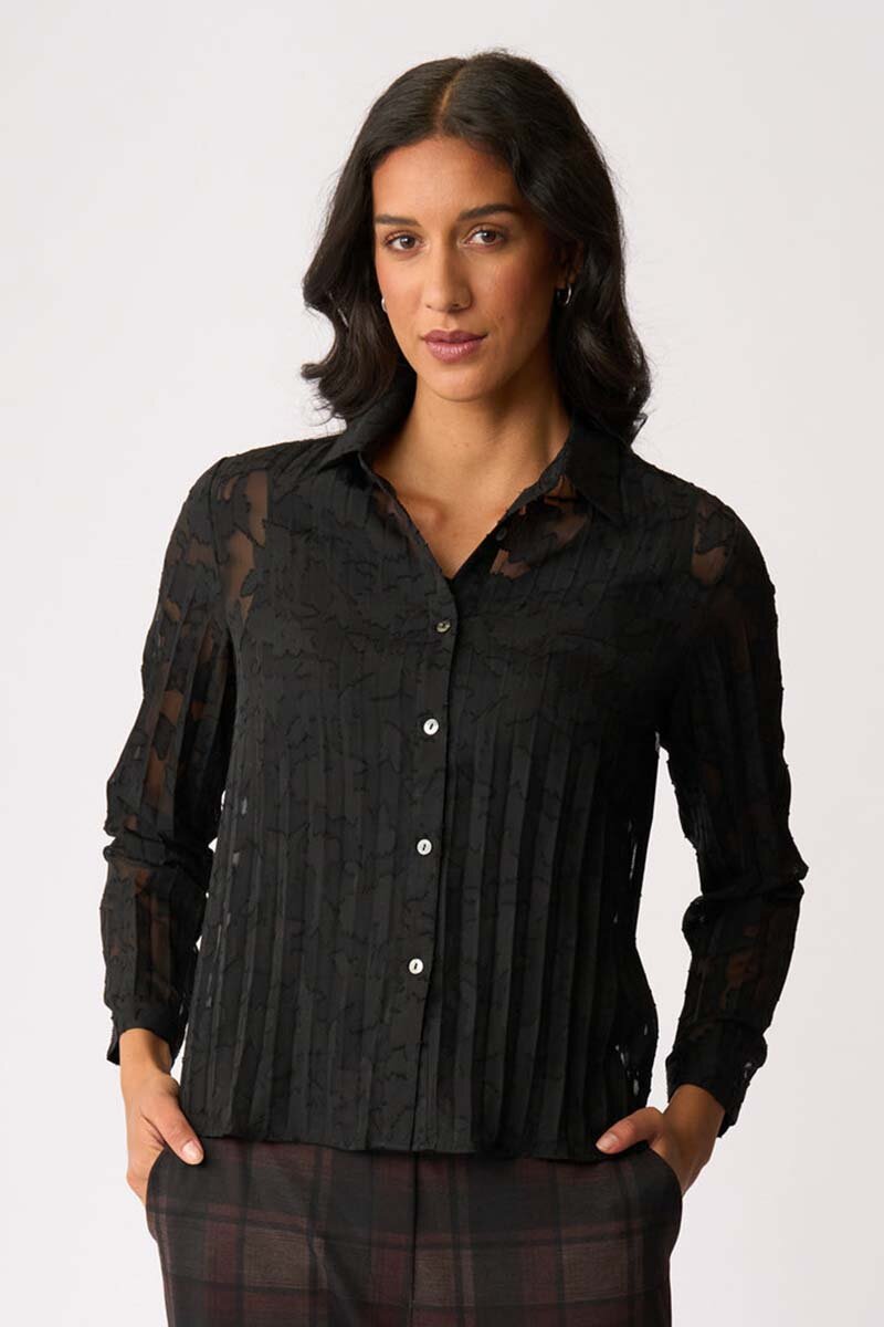 The Memo Pleat Dreams Shirt is a refined sheer blouse with soft pleating and gentle texture, designed to elevate everyday outfits while still feeling relaxed and easy to wear.