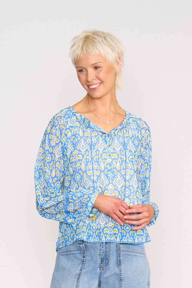 The Memo Tassel Blouse is floaty, effortless, and full of movement. With a gathered neckline, tassel tie detail, and blouson sleeves, it’s the perfect mix of relaxed and refined — ideal for pairing with denim or linen for easy everyday polish.