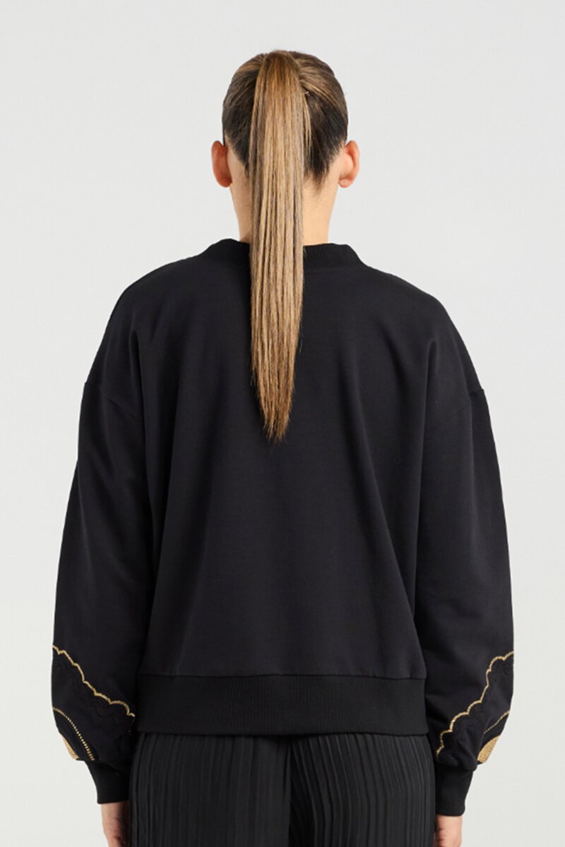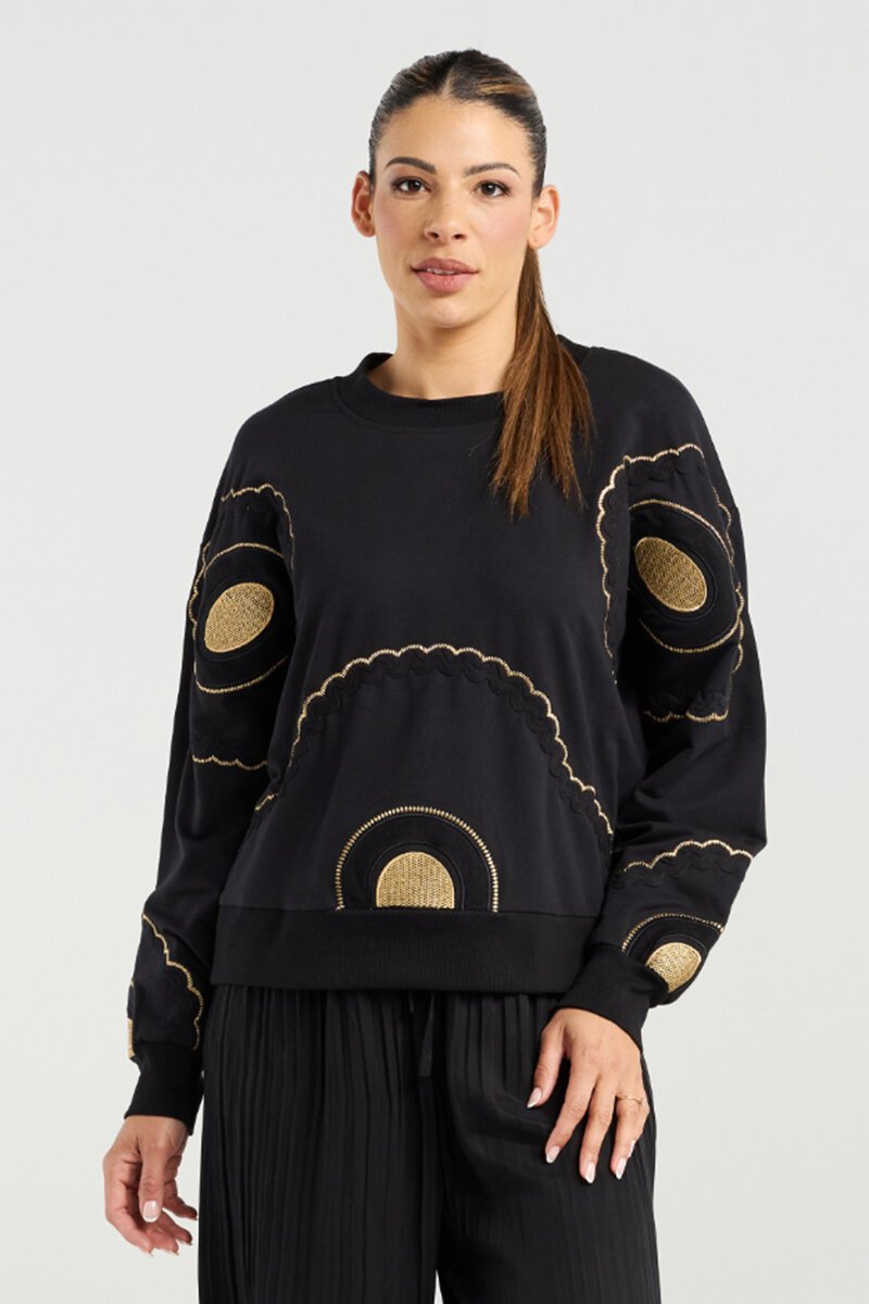 The Mabel Sweatshirt brings an elevated edge to your everyday. With its bold gold detailing and relaxed fit, it’s an easy throw-on that still feels styled. Pair it back with denim or wide-leg pants and you’re set.
