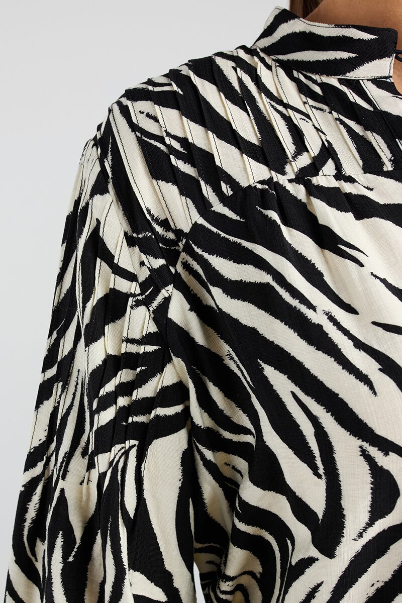 The Nora Shirt is your go-to when you want to make a statement without overthinking it. That bold print does all the work, while the relaxed shape keeps things easy. Style it half-tucked with denim or back with a skirt for a polished feel that still moves with you.