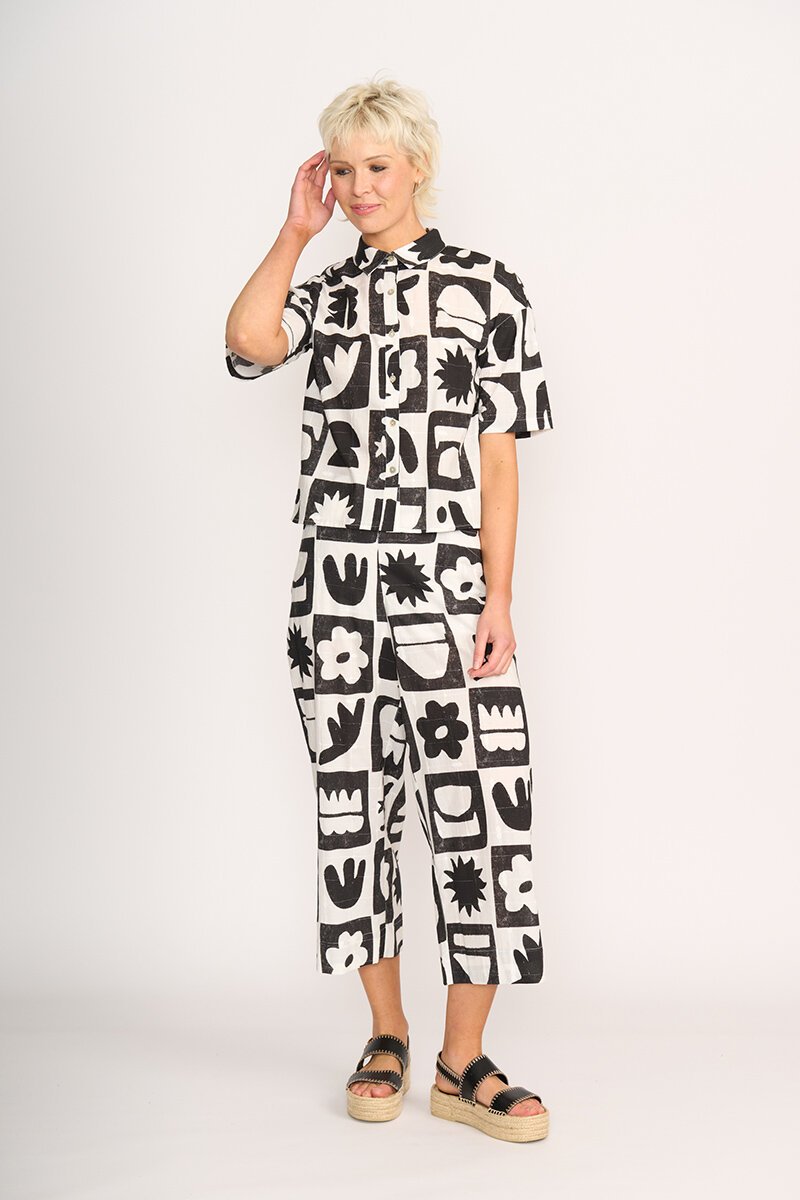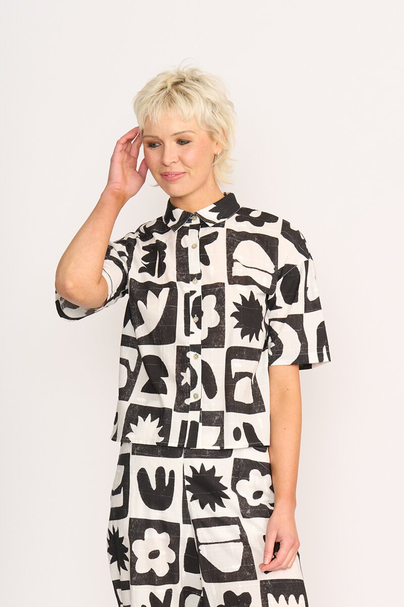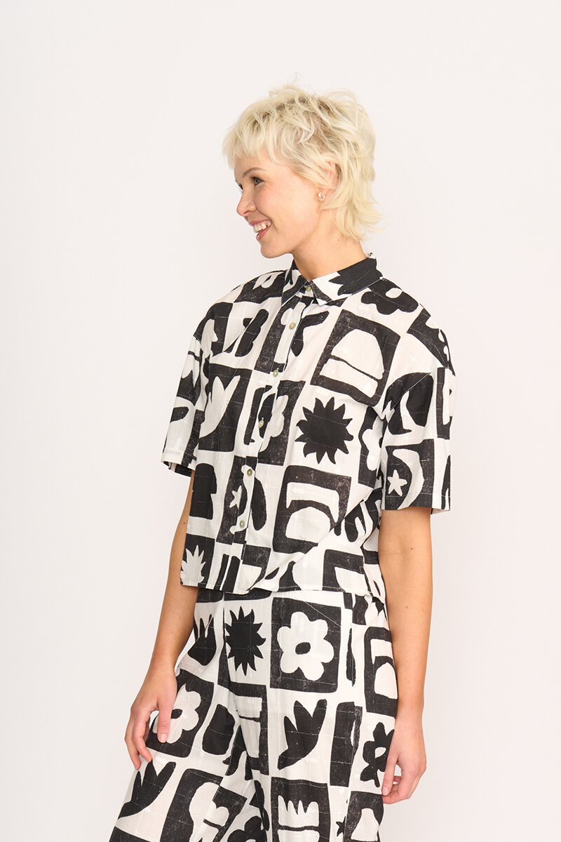 The Oh Three Boxy Short Sleeve Shirt is effortlessly cool with its relaxed fit and modern print. Lightweight and breathable, it’s made for sunny days — wear it loose with linen pants or half-tucked into shorts for that easy summer vibe.