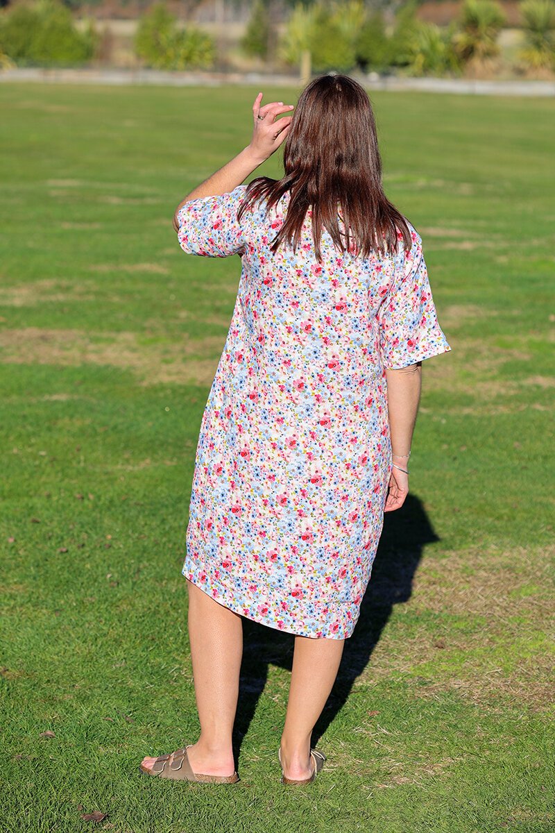 Bright, bold, and ready for sunny days. This easy shift dress is made from breathable 100% linen with a simple silhouette that skims the body without clinging. Finished with short sleeves and contrast inner facing for that polished Preen detail