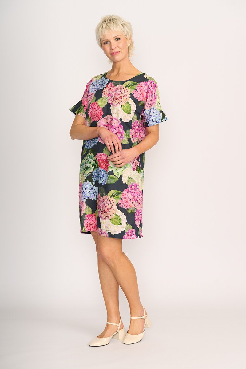 Bright, bold, and ready for sunny days. This easy shift dress is made from breathable 100% linen with a simple silhouette that skims the body without clinging. Finished with short sleeves and contrast inner facing for that polished Preen detail