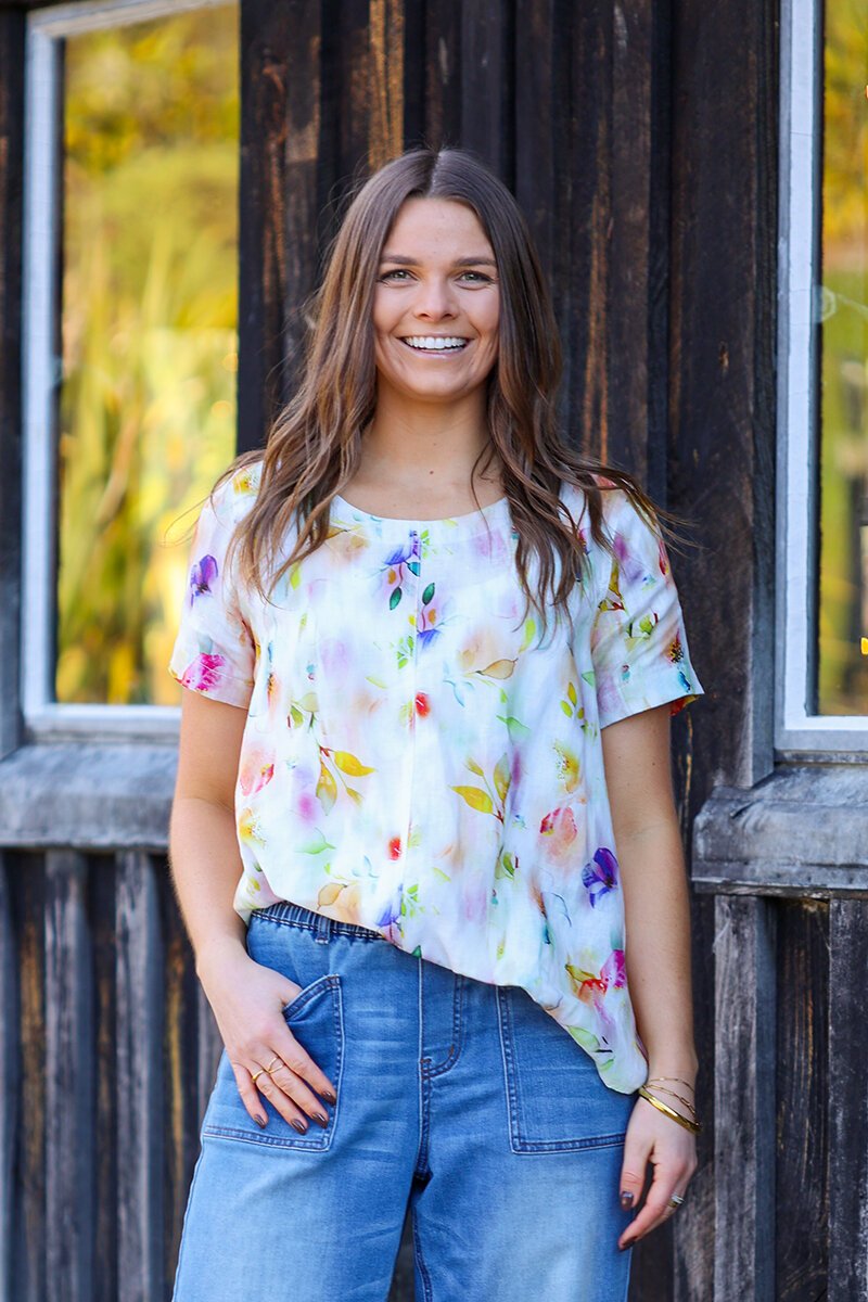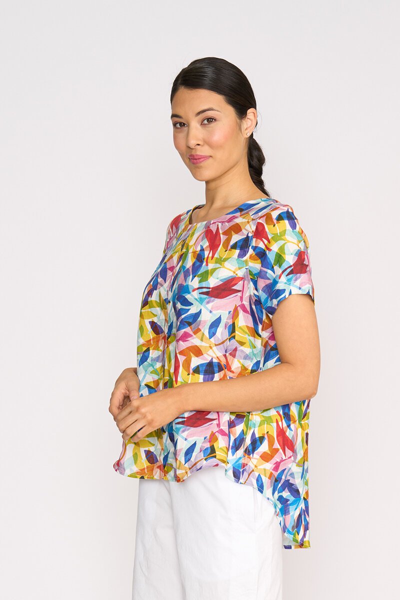 The Preen Print Swing Up Down Hem Top is light, lively, and ready for sunshine days. With its flattering swing cut and gentle up-down hemline, it moves with ease while the playful print brings a burst of colour to your look.