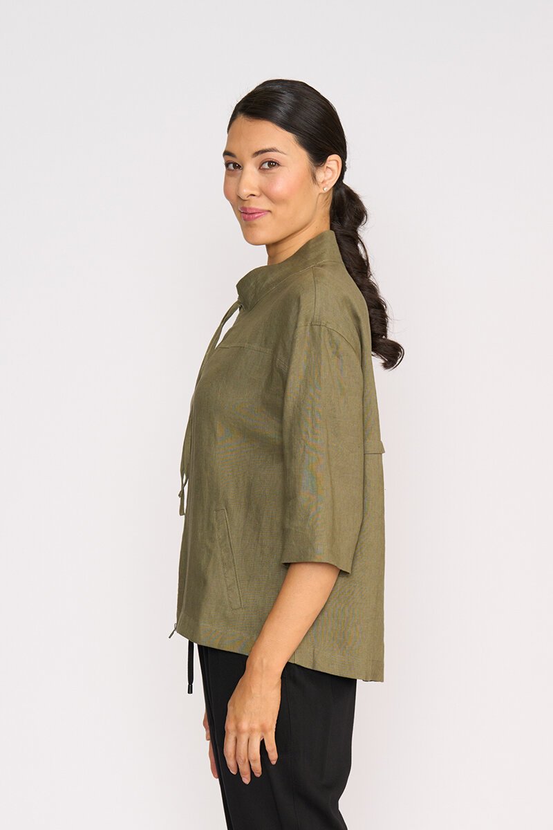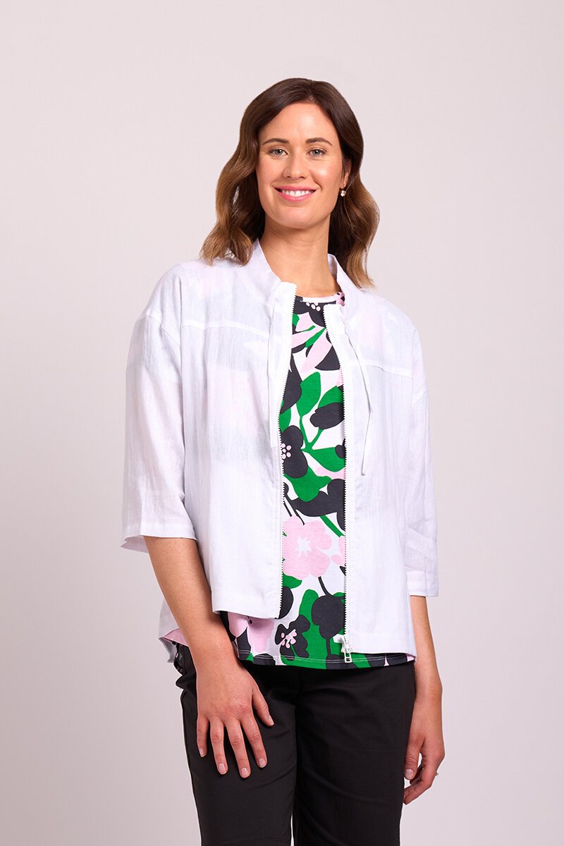 The Preen Relaxed Zip Front Jacket is your easy layer for summer days. Crafted from lightweight fabric with a soft drape, it features a zip front, drawstring neckline, and pockets for that effortless mix of style and practicality. Perfect over tees or dresses.