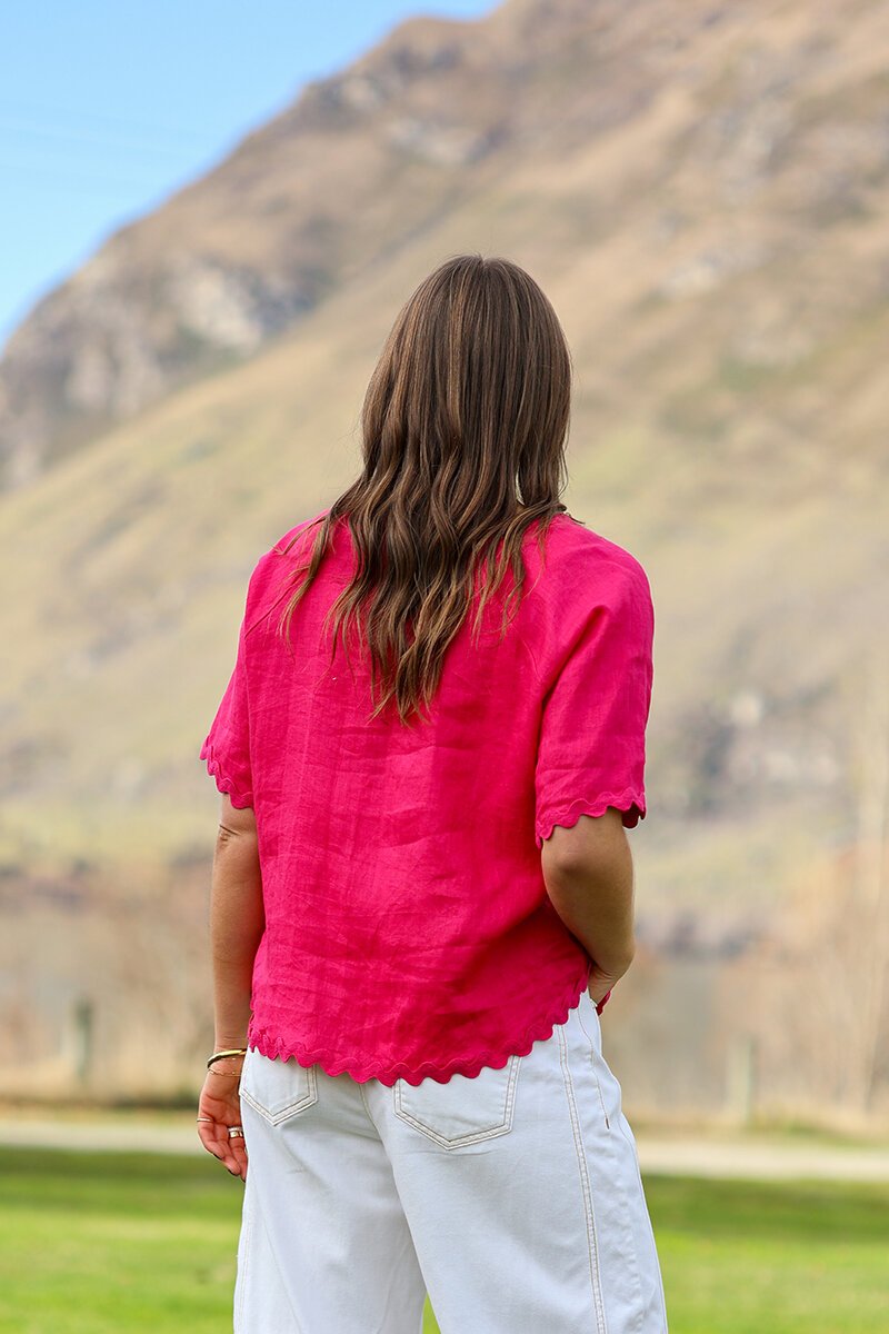 An easy linen favourite with a playful twist. The Ric Rac Scoop Top is all about that soft structure—relaxed through the body with raglan sleeves and the sweetest ric rac trim at the hem and cuffs. Pop it on with denim or wide-leg pants for effortless everyday style.