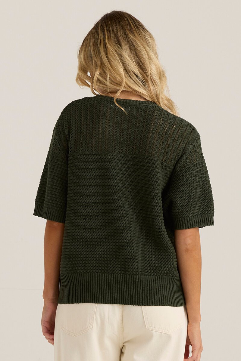 Soft knit tee with a relaxed, boxy shape and subtle texture. Easy to wear, easy to style—perfect with denim, tailored pants, or layered for effortless everyday outfits.