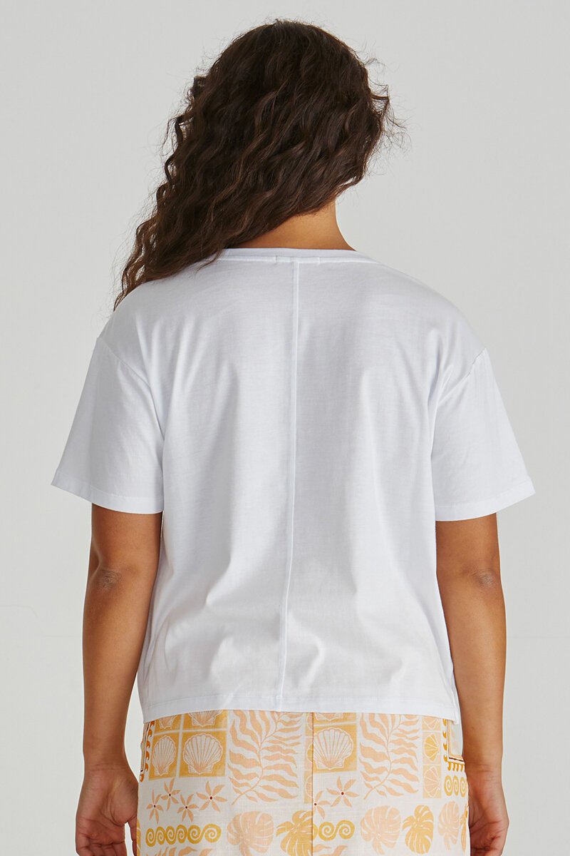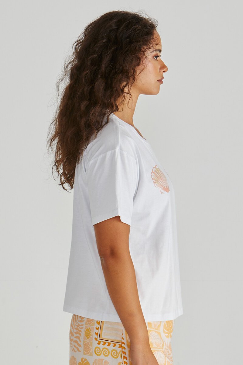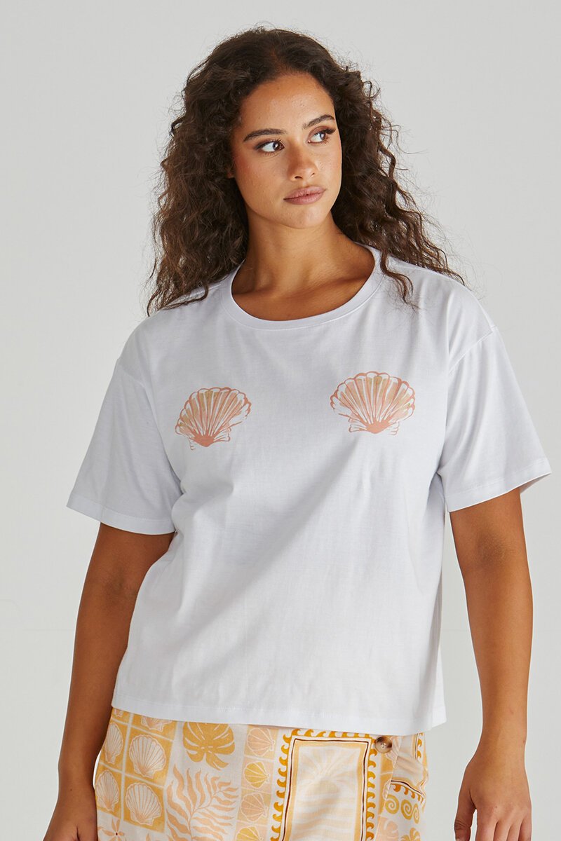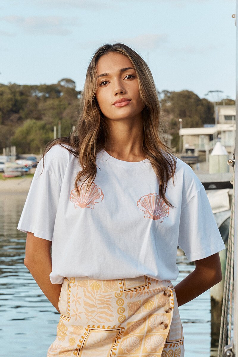 The Sass Cynthia Tee is here for all the summer vibes. With a relaxed fit and a cheeky little shell print across the front, it’s the kind of tee that adds a bit of fun to denim shorts, skirts, or an easy maxi.