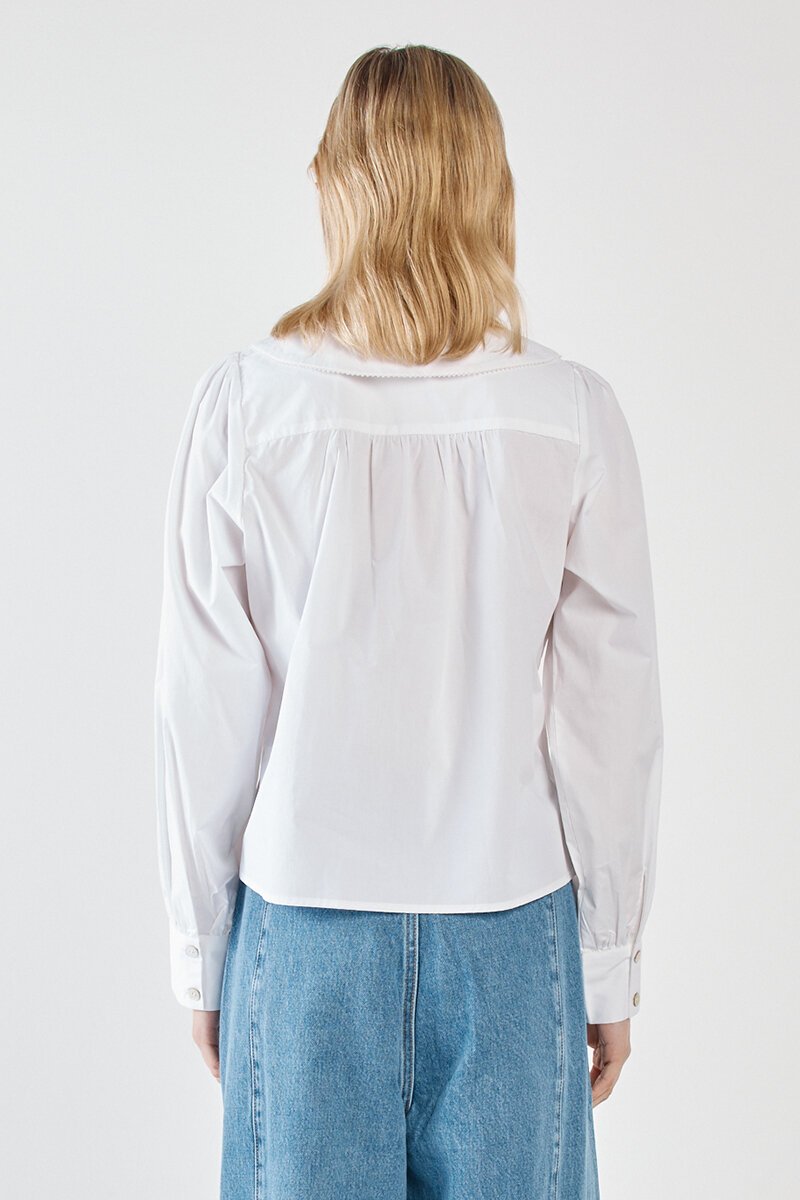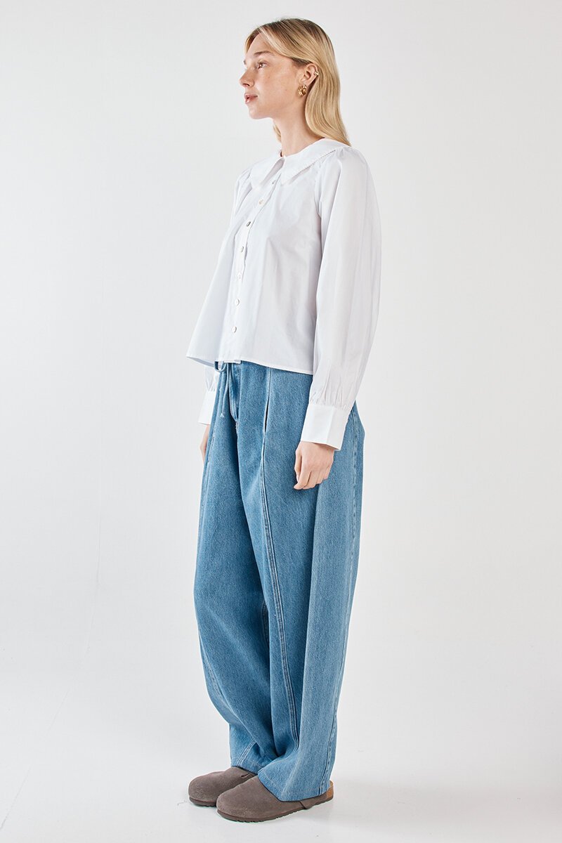 The Sass Gypsy Large Collared Shirt brings a playful twist to classic shirting. Lightweight and easy, with a statement collar and soft shape that dresses up denim in seconds.