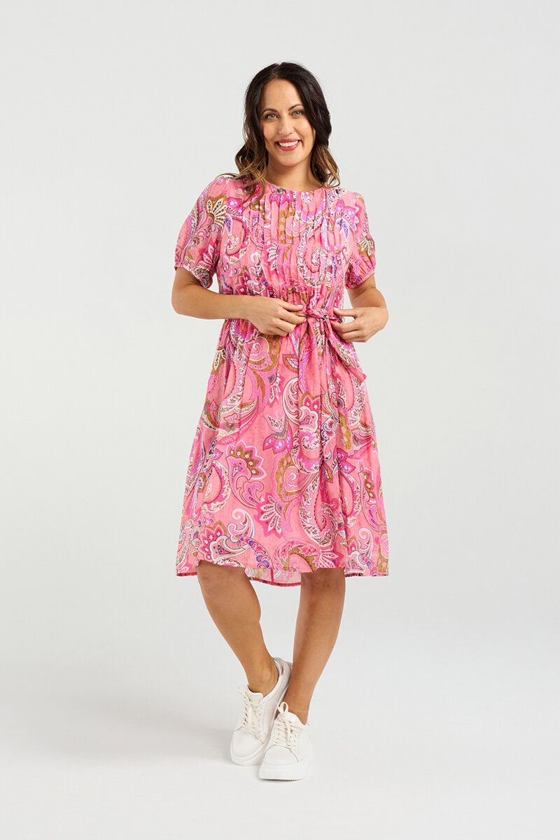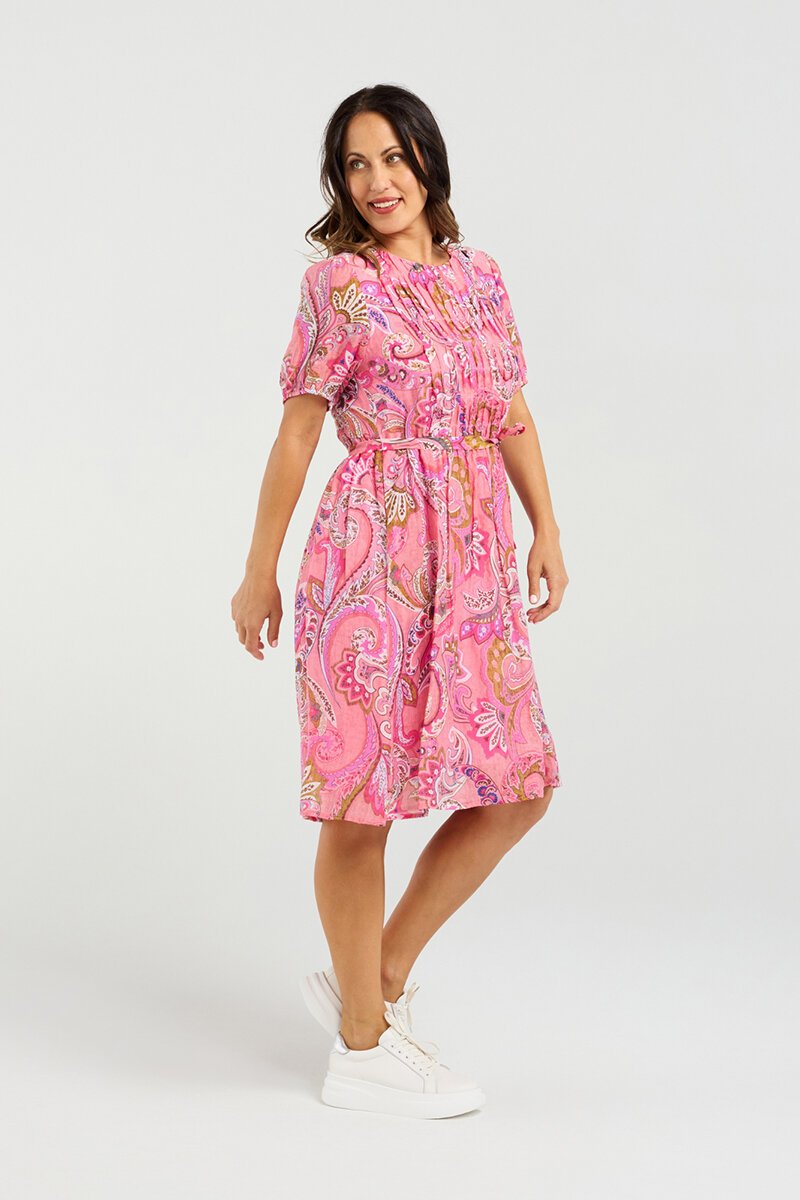 The Seduce Joana Dress brings a playful twist to everyday dressing. With its soft gathers through the bodice, puff sleeves, and a self-tie waist, it creates a flattering shape that’s easy to wear. The knee-length cut keeps it fresh and versatile, whether paired with sneakers or sandals.