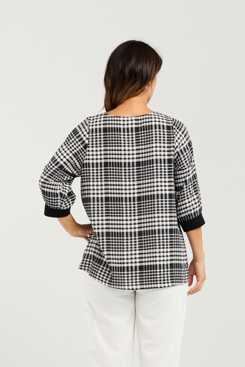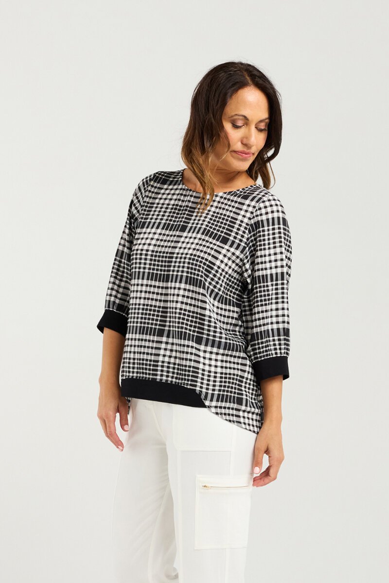 The Seduce Taylor Top blends modern print with an easy silhouette, making it a go-to for both casual and polished looks. Featuring a relaxed fit, ¾ sleeves, and contrast cuff and hem detailing, it’s a flattering style that works from day to night.