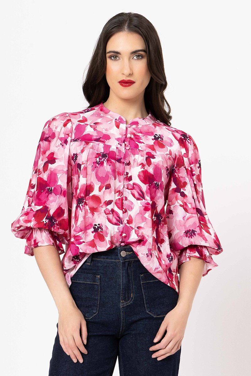 The Seeking Lola Celia Blouse in Blossom Smudge is a feel-good piece with a soft statement print. The floaty shape and feminine sleeve detail make it easy to dress up or keep relaxed with denim.