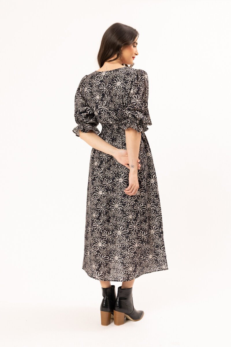 The Seeking Lola Echo Dress is a flattering midi dress with a softly shaped waist and feminine sleeves. Easy to wear yet polished, perfect for workdays, dinners, and everything in between.