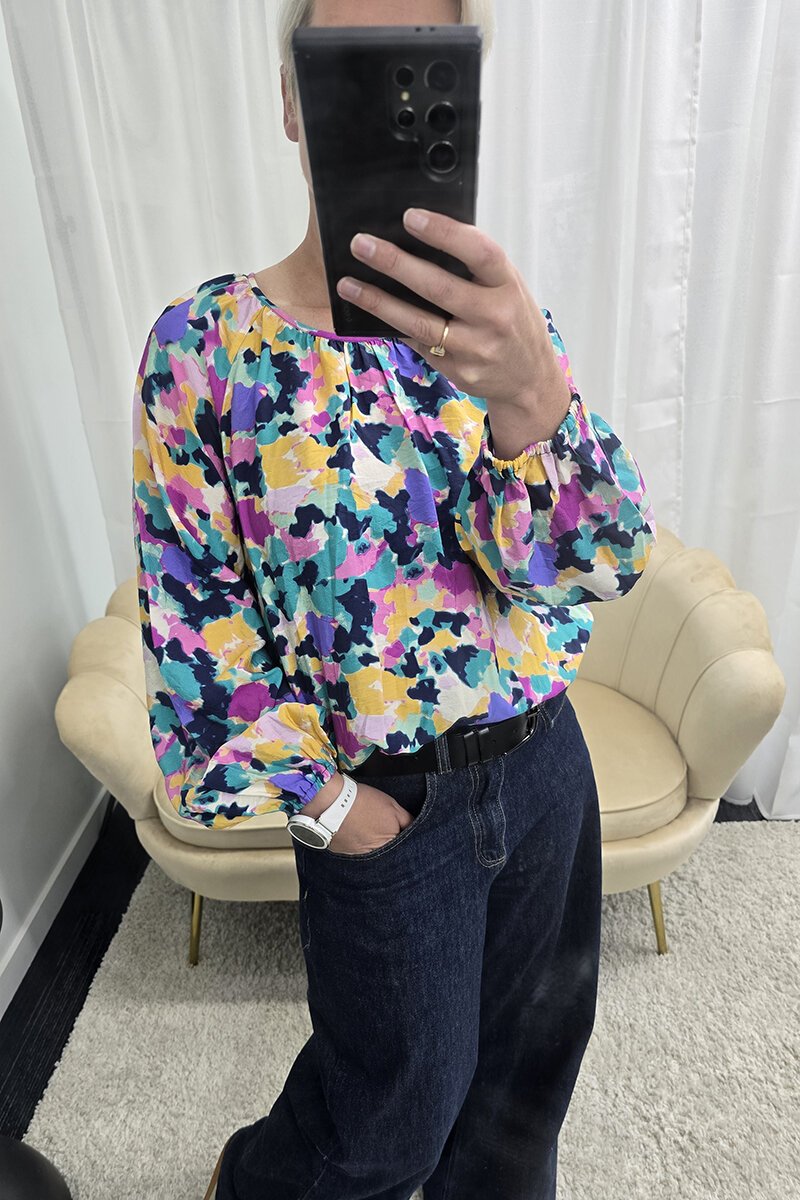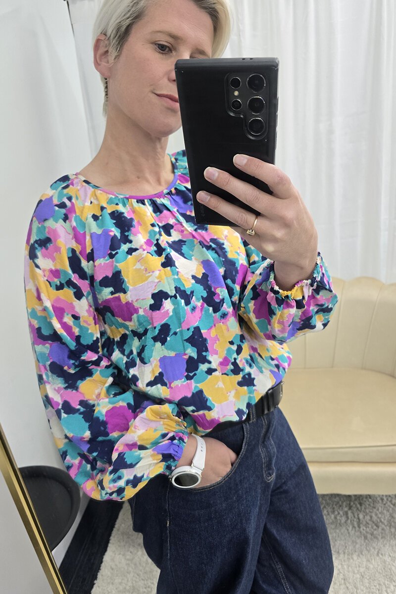 Bold print, floaty sleeve, and a pop of colour you can’t ignore—this is the United Top in Colourful by Seeking Lola. A playful take on a wardrobe staple, it’s made for brightening up your denim or clashing with your favourite skirt. Easy shape, easy to love.