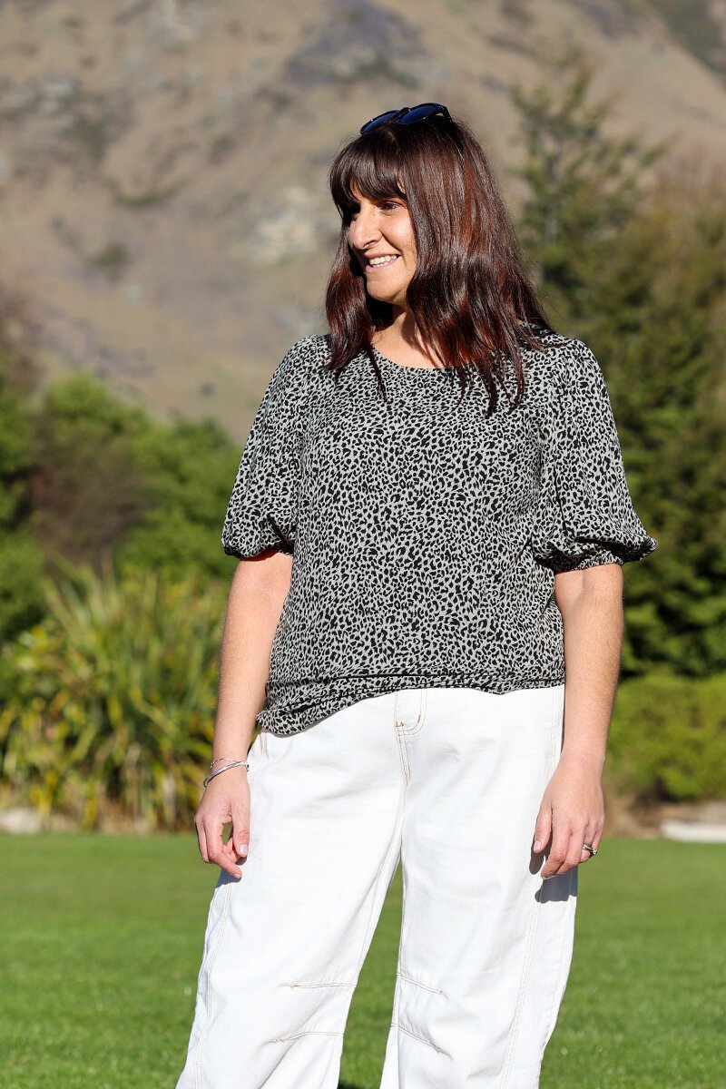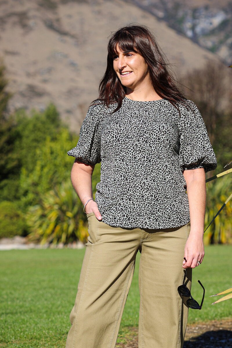 A cute and fun top featuring a leopard pattern, elbow-length sleeves, and a sweet tie detail at the back neckline. Easy to wear and style, it’s perfect for adding a playful touch to your everyday look.
