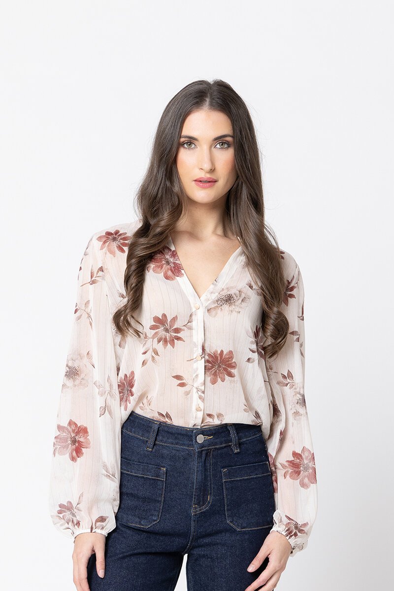 The Seeking Lola Full of Life Top is a delicate, sheer style that brings a touch of romance to any outfit. With its elegant button front and effortlessly pretty design, it’s perfect for layering or wearing on its own.