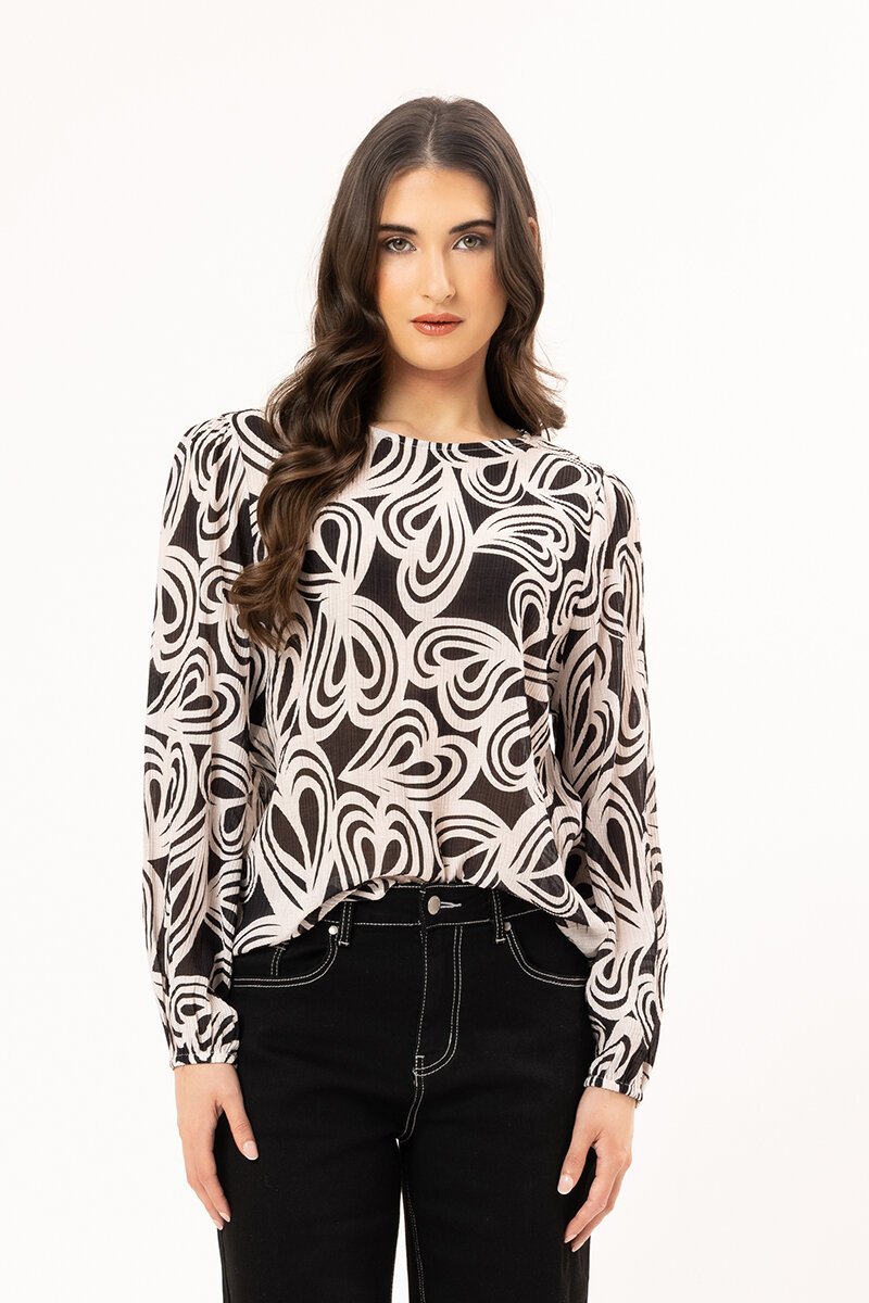 The Seeking Lola Gratitude Top in Ivory Swirl is an easy statement piece with its bold abstract print and floaty shape. Light and effortless to wear, it pairs perfectly with denim or black pants.