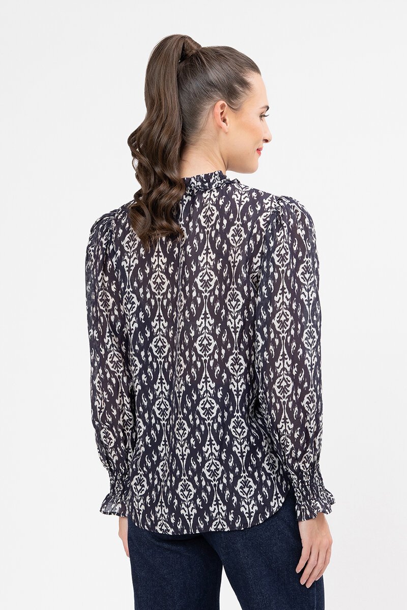 A wardrobe winner in a painterly abstract print, the Emilty Top features soft shirring at the cuff and an easy round neckline. Dress it up with trousers or go casual with denim.